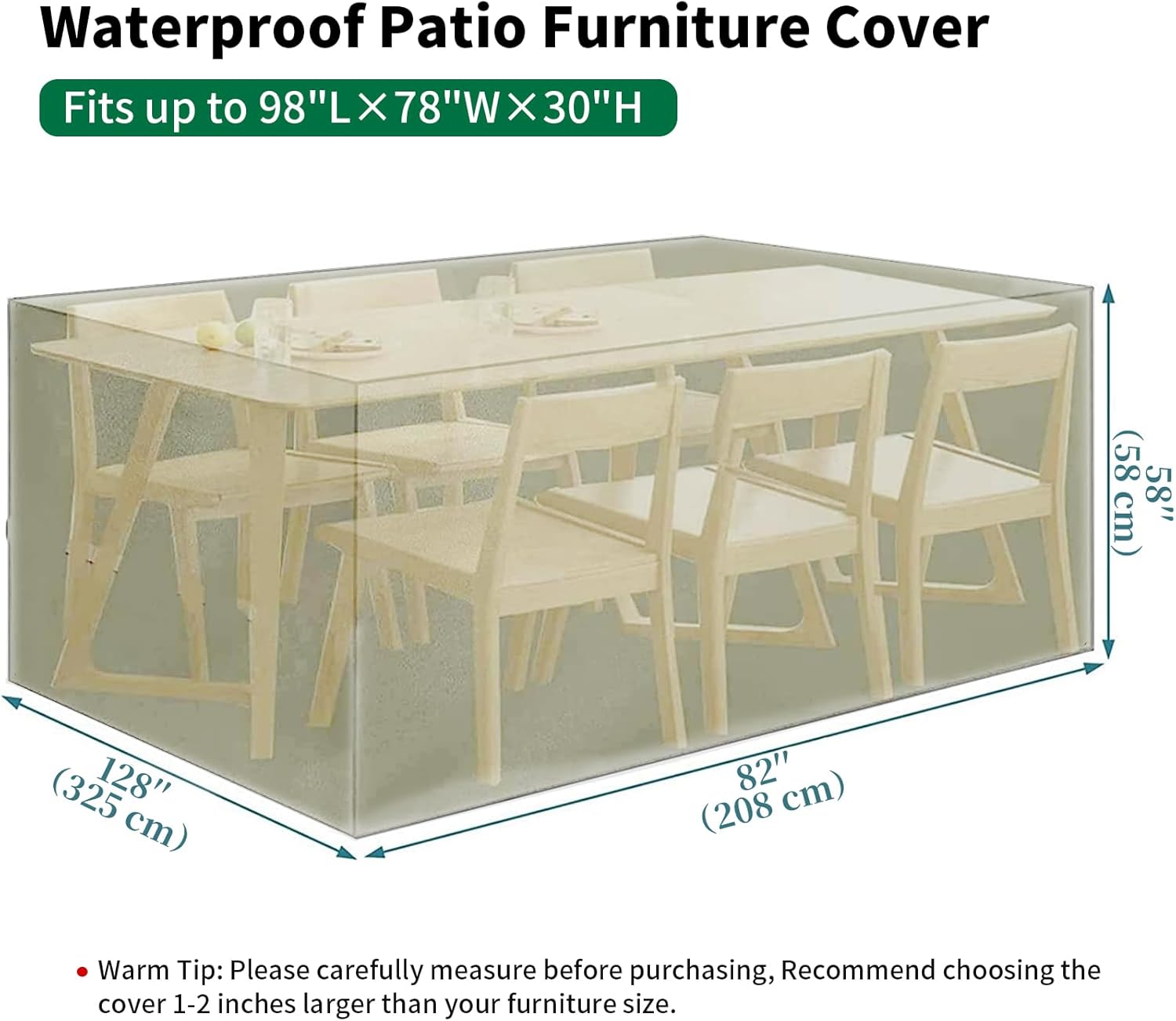 ❤【Extra Large】Our outdoor furniture cover is designed larger than most in the market.The size of this cover is 98" L 78" W 30" H. It fits most furnitures like end tables, benches, coffee tables, chairs, the round or oval patio dining table set with 8-12 chairs, or 6-8 seats sofa set. Please measure the dimension of your furniture set before purchasing.
