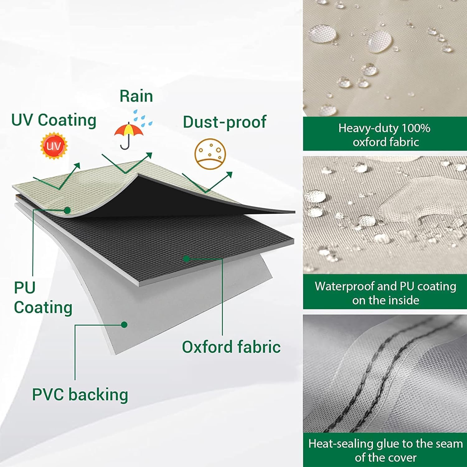 ❤【Heavy-Duty Waterproof Material】The patio table waterproof cover has high-density 210D PVC-lined oxford polyester fabric with a waterproof coating. Protect furniture from damage by UV. The cover is able to against rain, wind, dust, snow, fierce weather, and bird droppings.