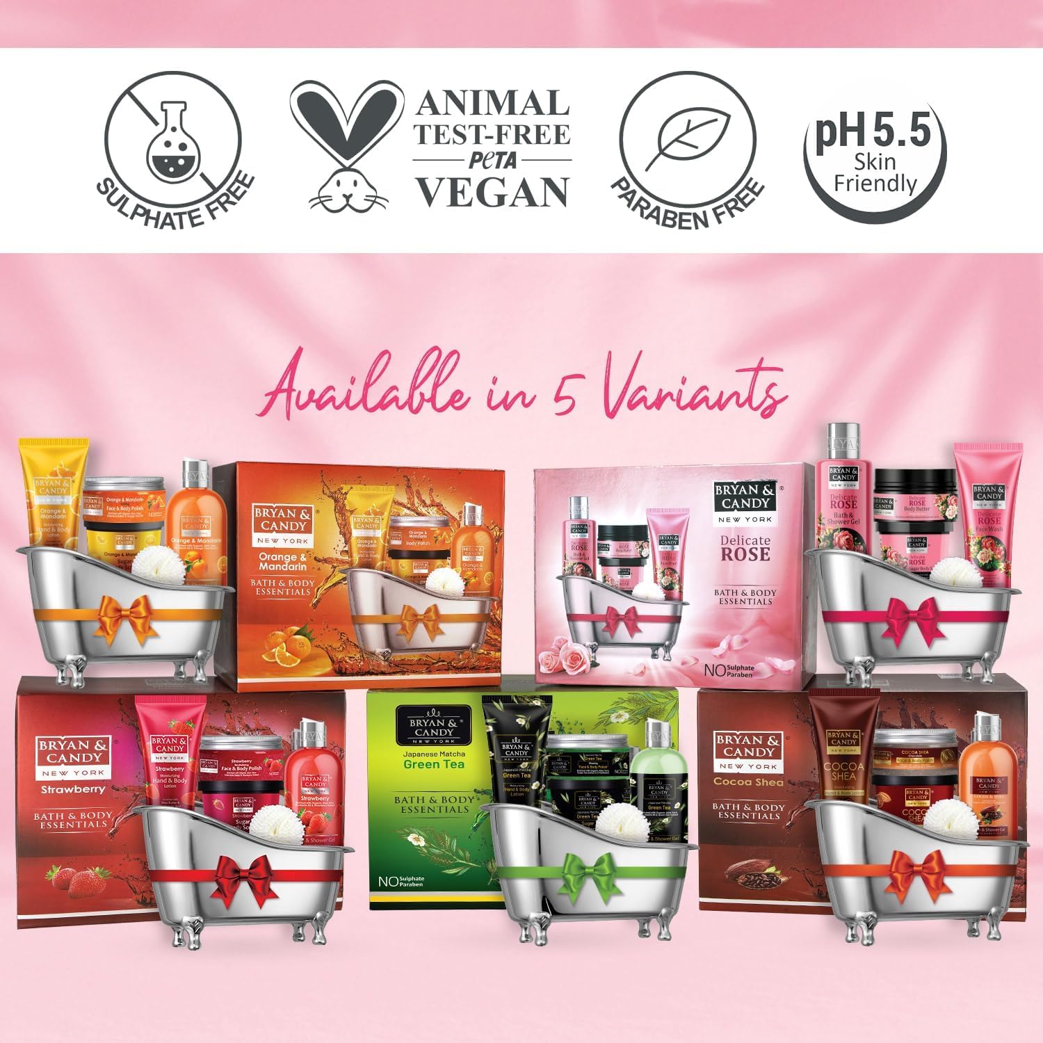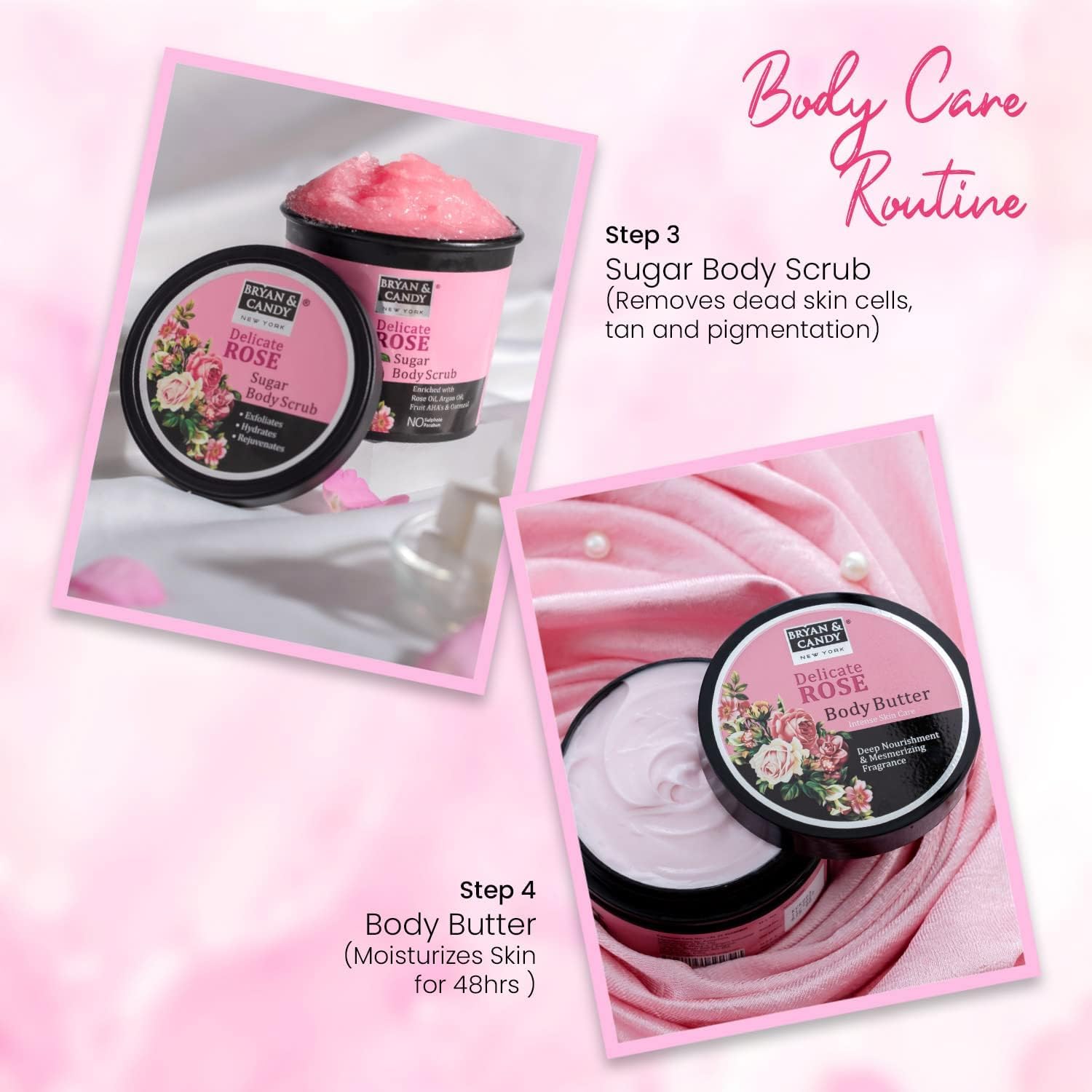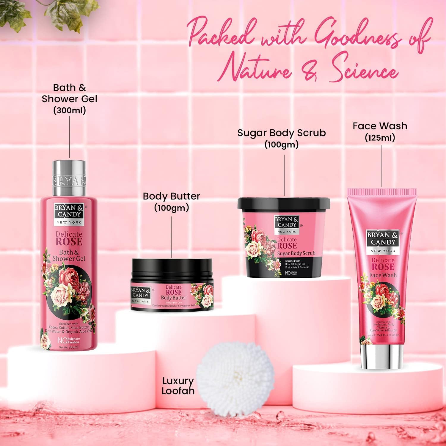 BRYAN & CANDY Delicate Rose Bath Tub Gift Set For Women and Men |Complete Home Spa Experience (Shower Gel, Body Butter, Sugar Scrub, Face Wash)