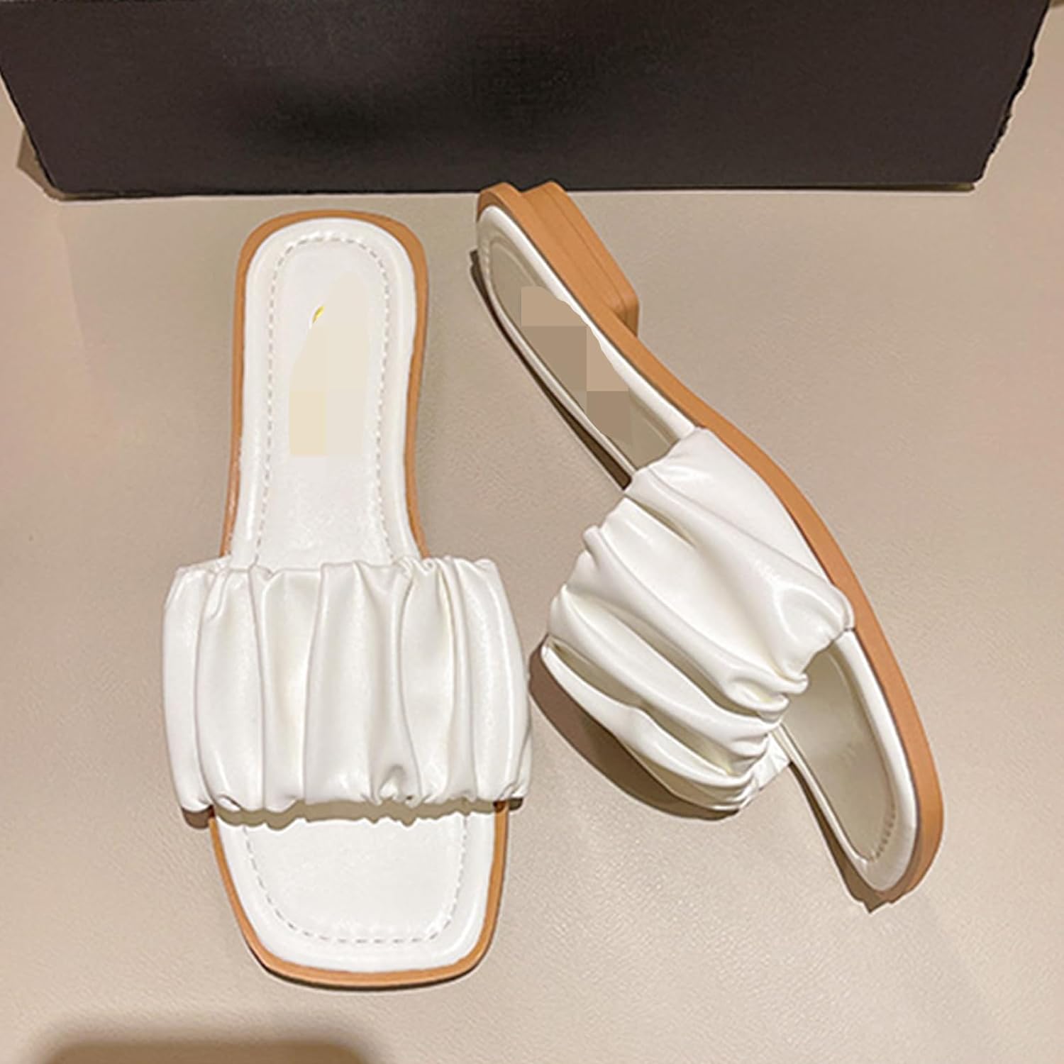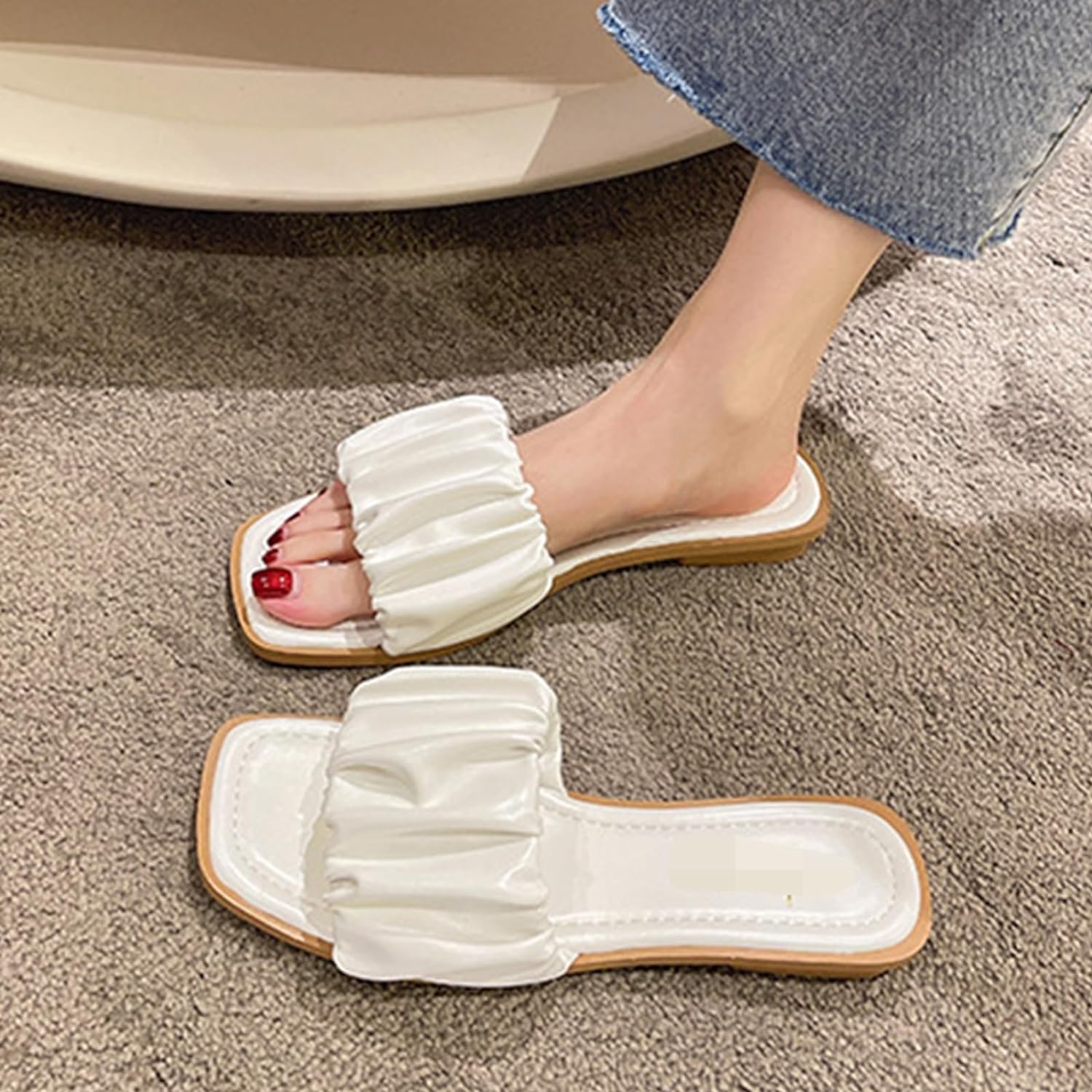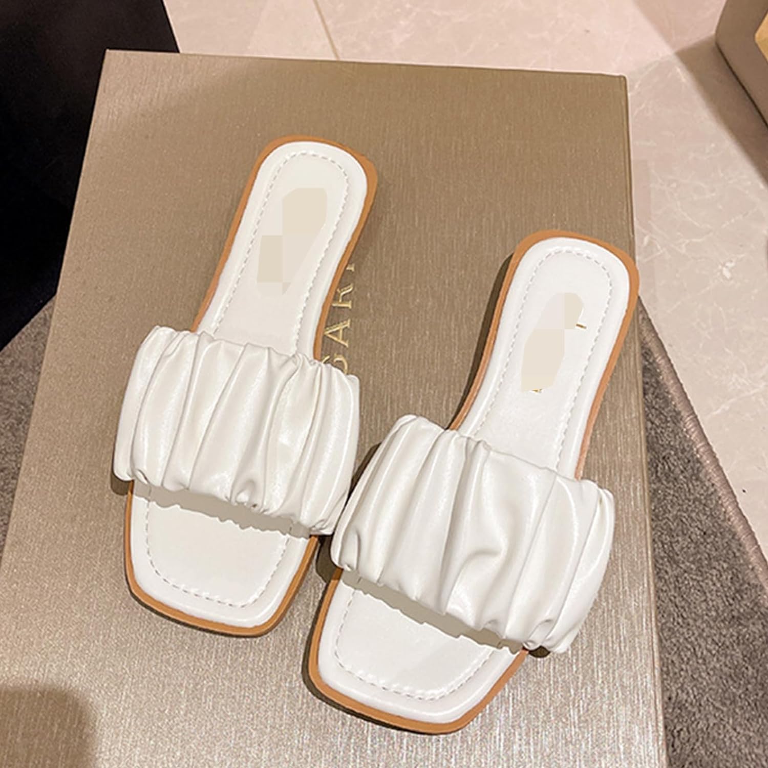 MISETA Women's Slippers Fairy Wind Fashion Versatile Flat Bottom Soft Bottom Temperament Sandals,White,8