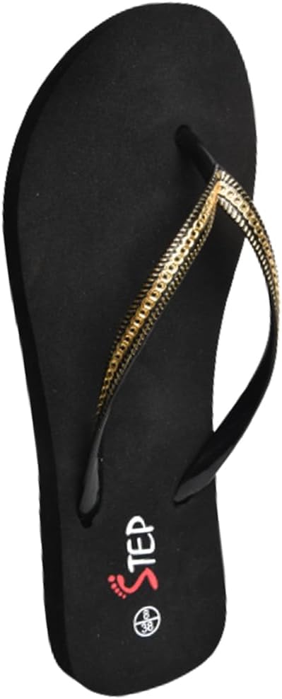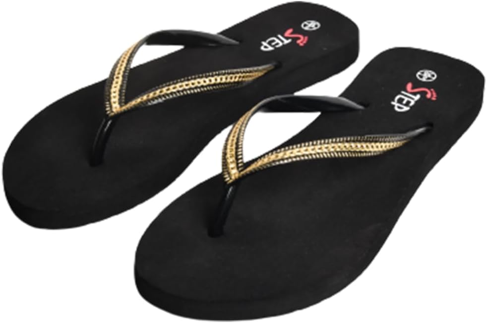 STEP UAE Go Girl Chain Ladies Flip Flop Long Lasting Comfortable Sandals Slippers 1. Super Soft and Flexible foot-bed for extreme comfort. 2. Premium, Modern High Contrast Striped Strap Design for a unique, stylish look. 3. Simple Design which is perfect for everyday wear. 4. EVA based sole that endures rain, water or wet surfaces. 5. Anti-Slip Outsole for better traction.