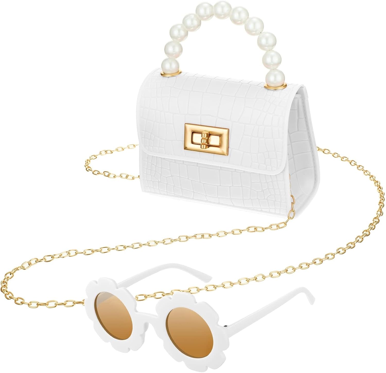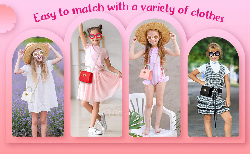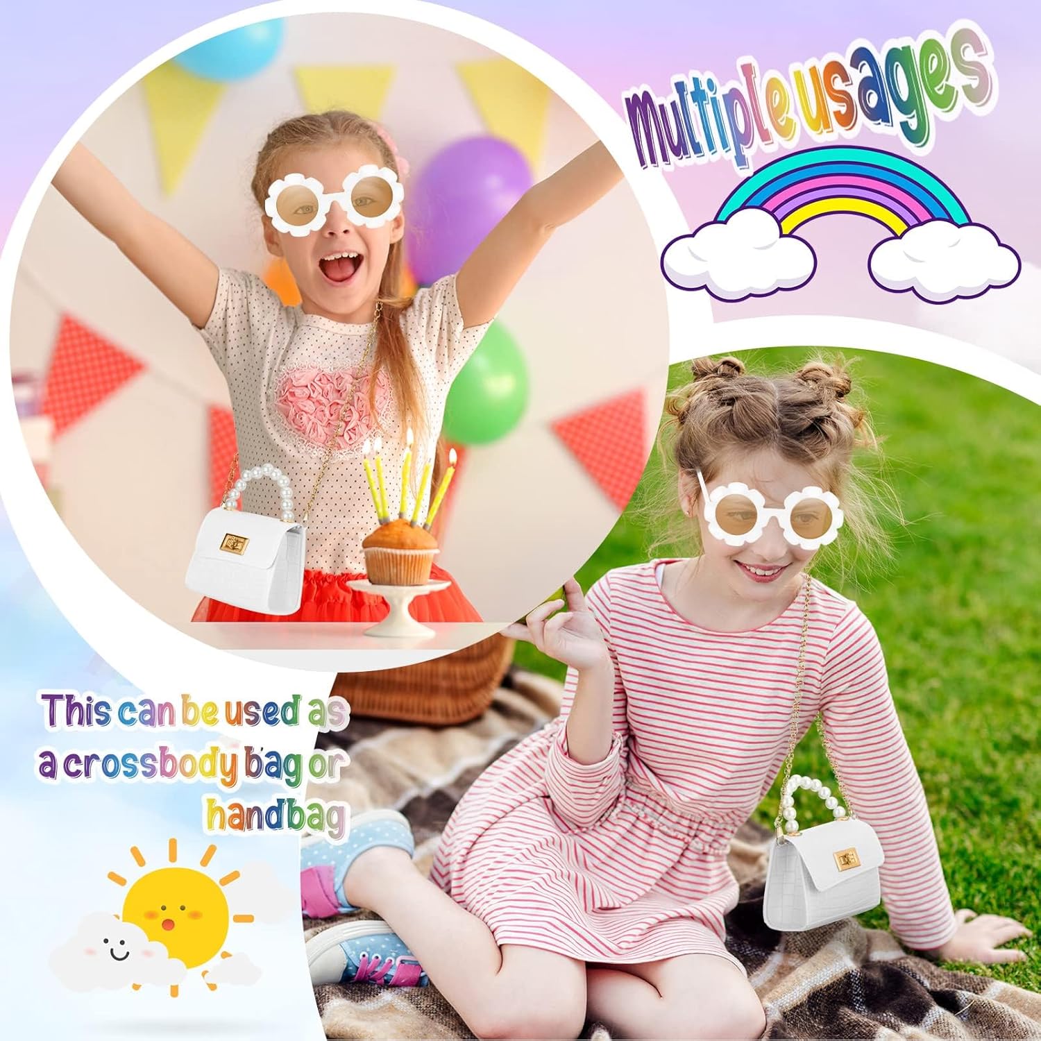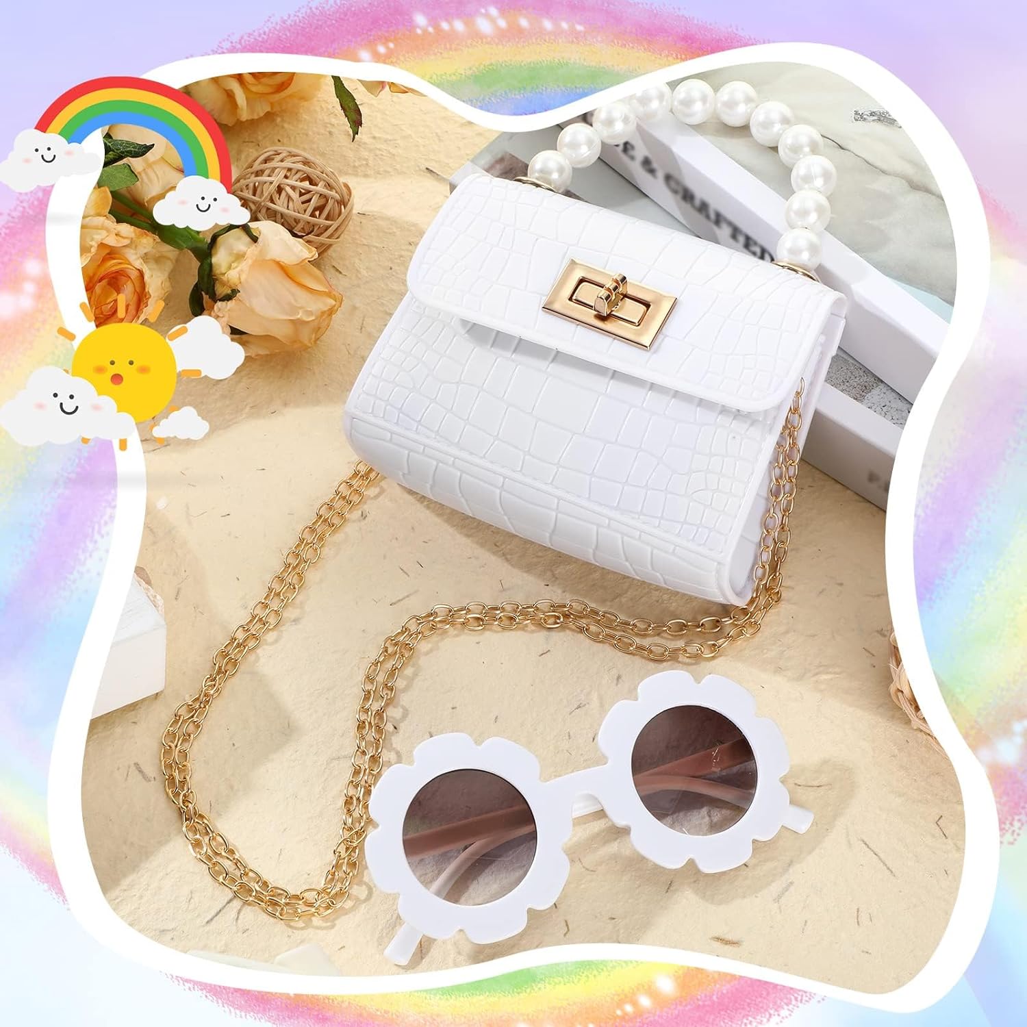 - ✅【Material】Our girls purse for kids 6-8 is mainly made of quality PVC with haedware rotating lock, and the flower sunglasses are made of acrylic and PC material, which are safe and reliable, not easy to break or deform, and will not hurt girl's skin.