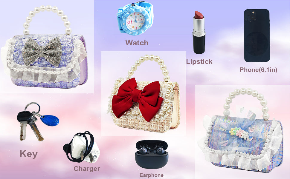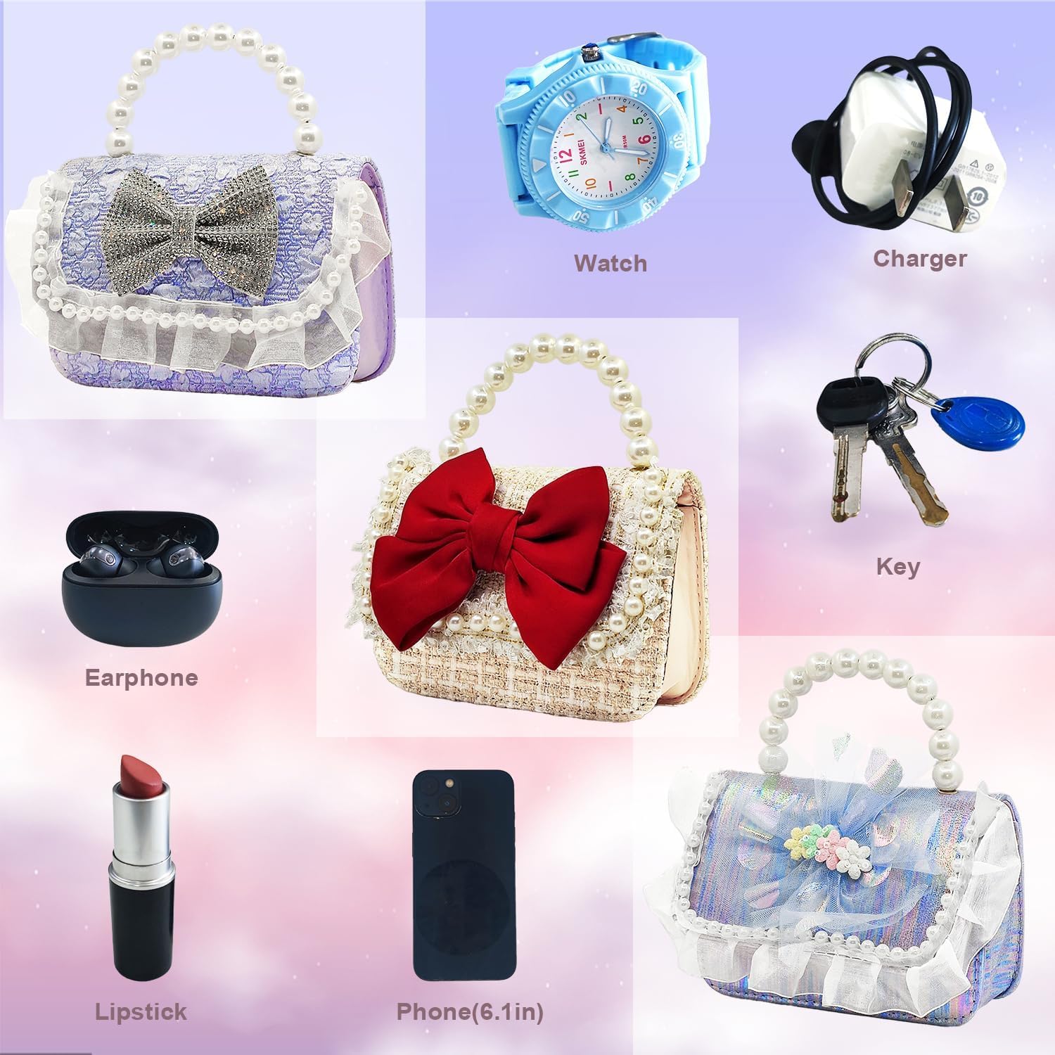 - ✅【Design】This cute mini purse comes with the stylish bowknot pattern, high-quality glitter material makes the wallet more sparkle. The Elegant pearl handle will make your baby girl become the most gorgeous fashionistas wherever she goes and receives tons of compliments