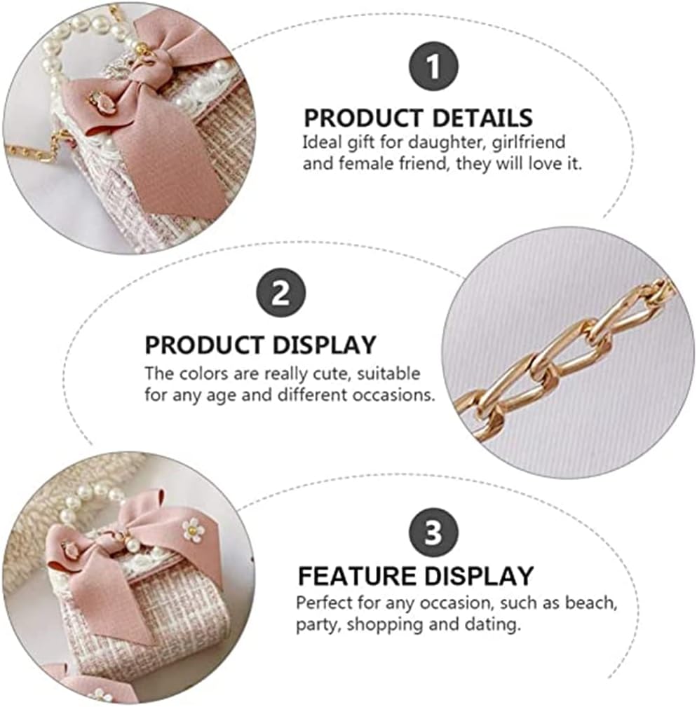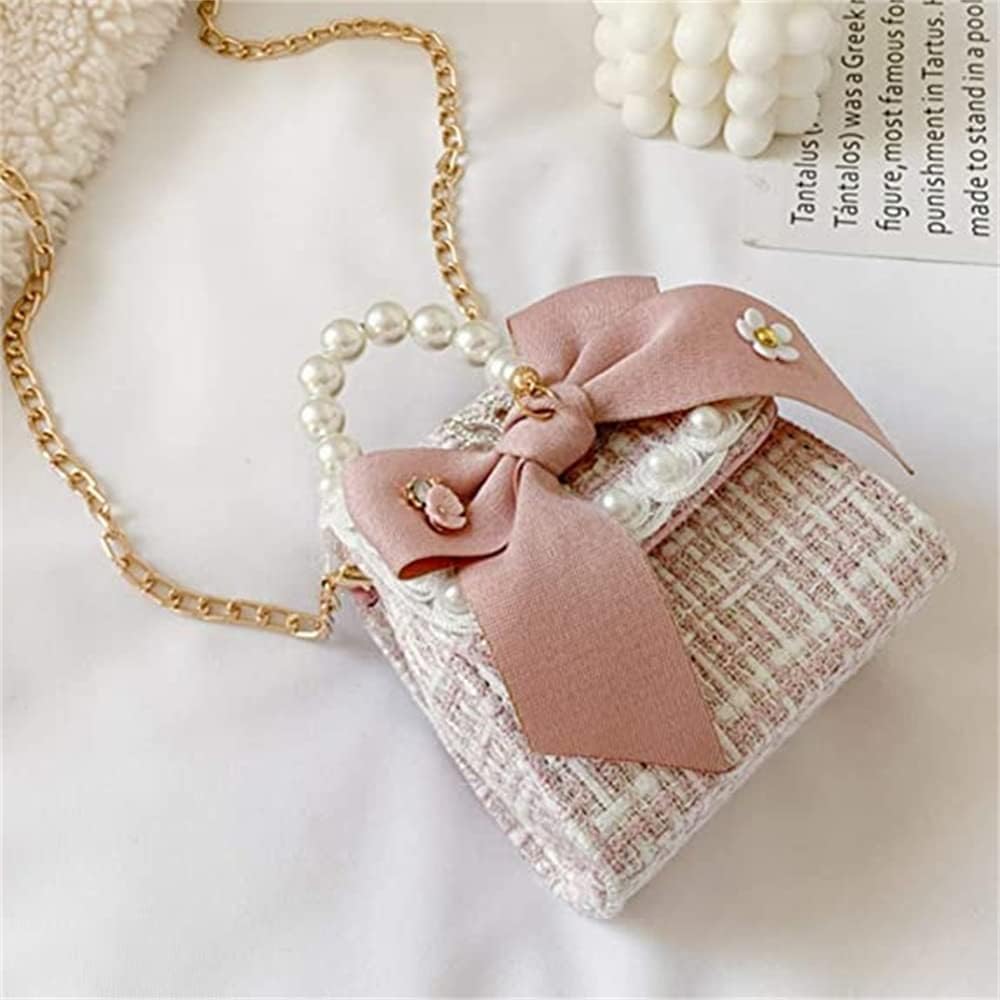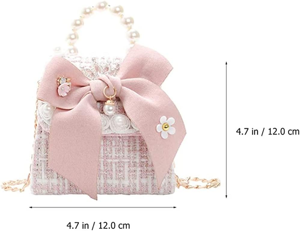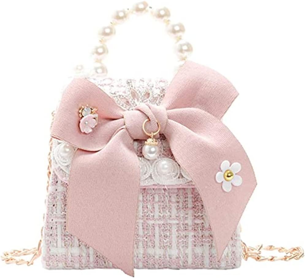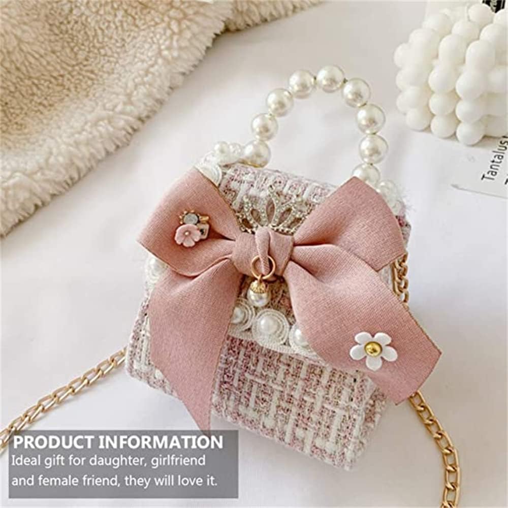 Girls Handbags, Little Girls Bowknot Purse, with Pearl Chain, Cute Princess Handbags Pink Shoulder Bag, Mini Messenger Bag, for Kids