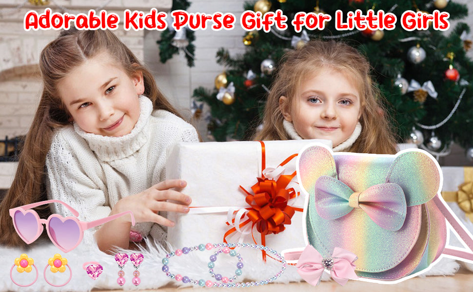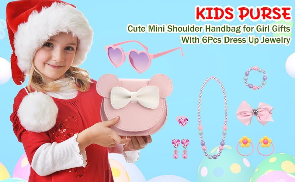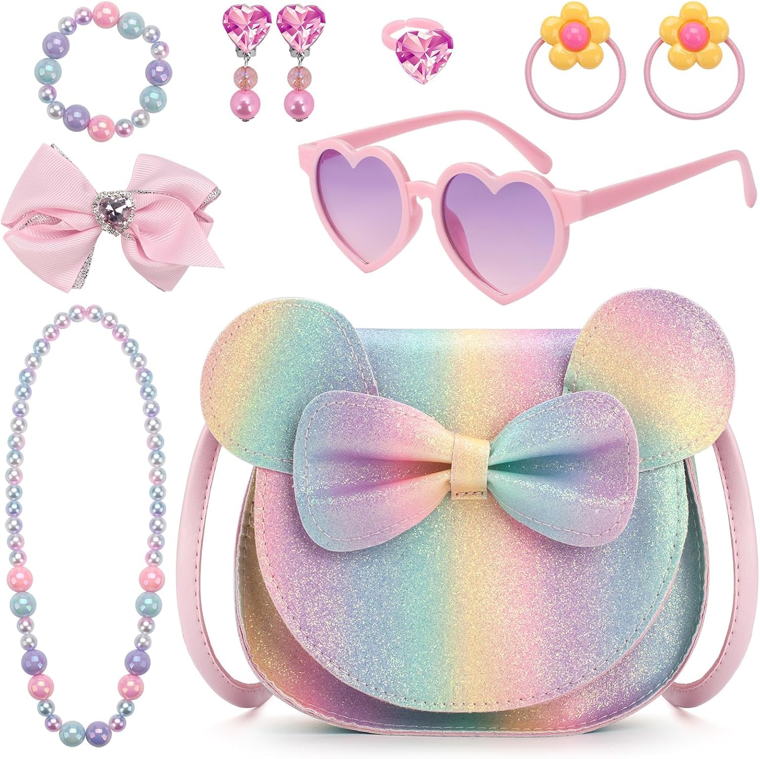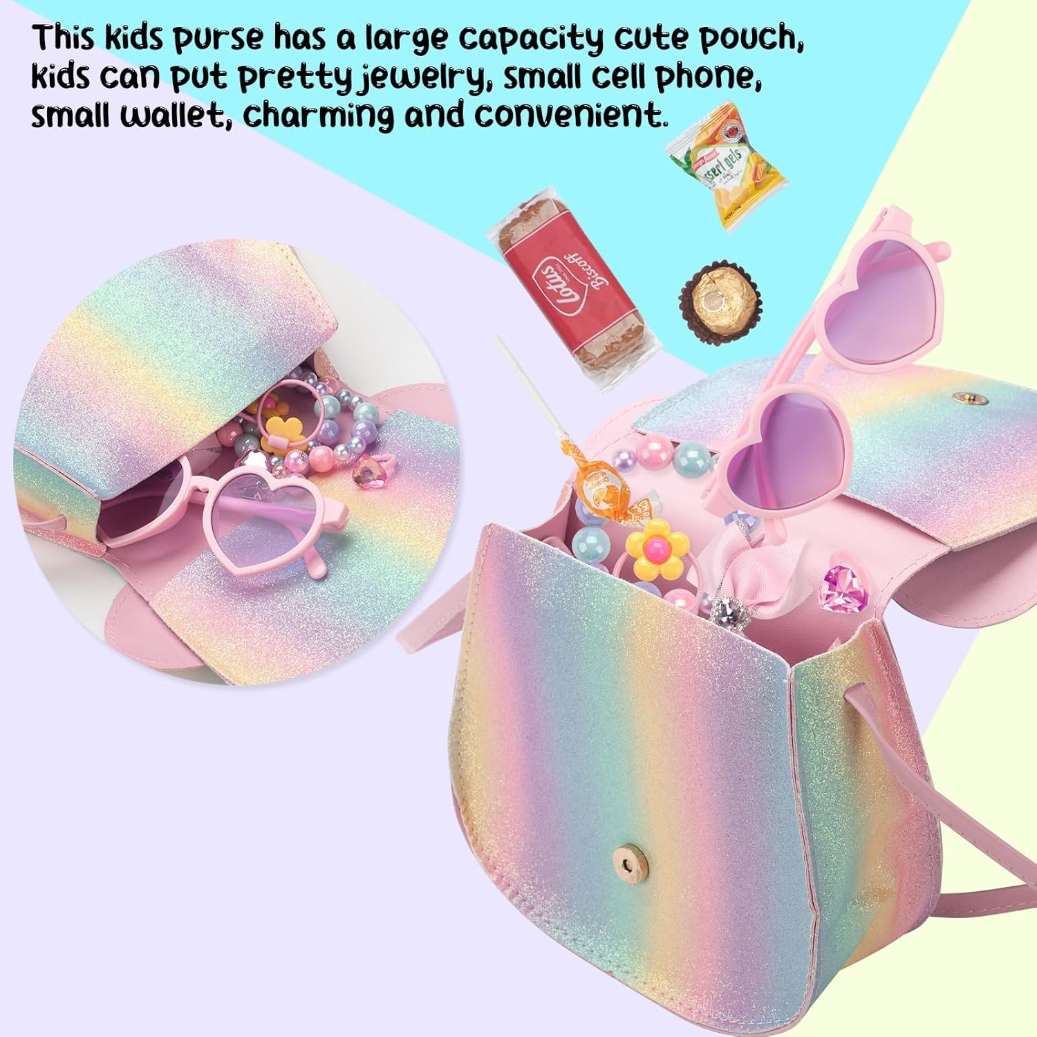 Girls Shoulder Bags Set, Cute Kids Purse Crossbody Bags, Purse for Little Girls, with Kids Dress Up Jewelry Set Pretend Play Accessories, Birthday Presents for 3 4 5 6 Years Old Girls