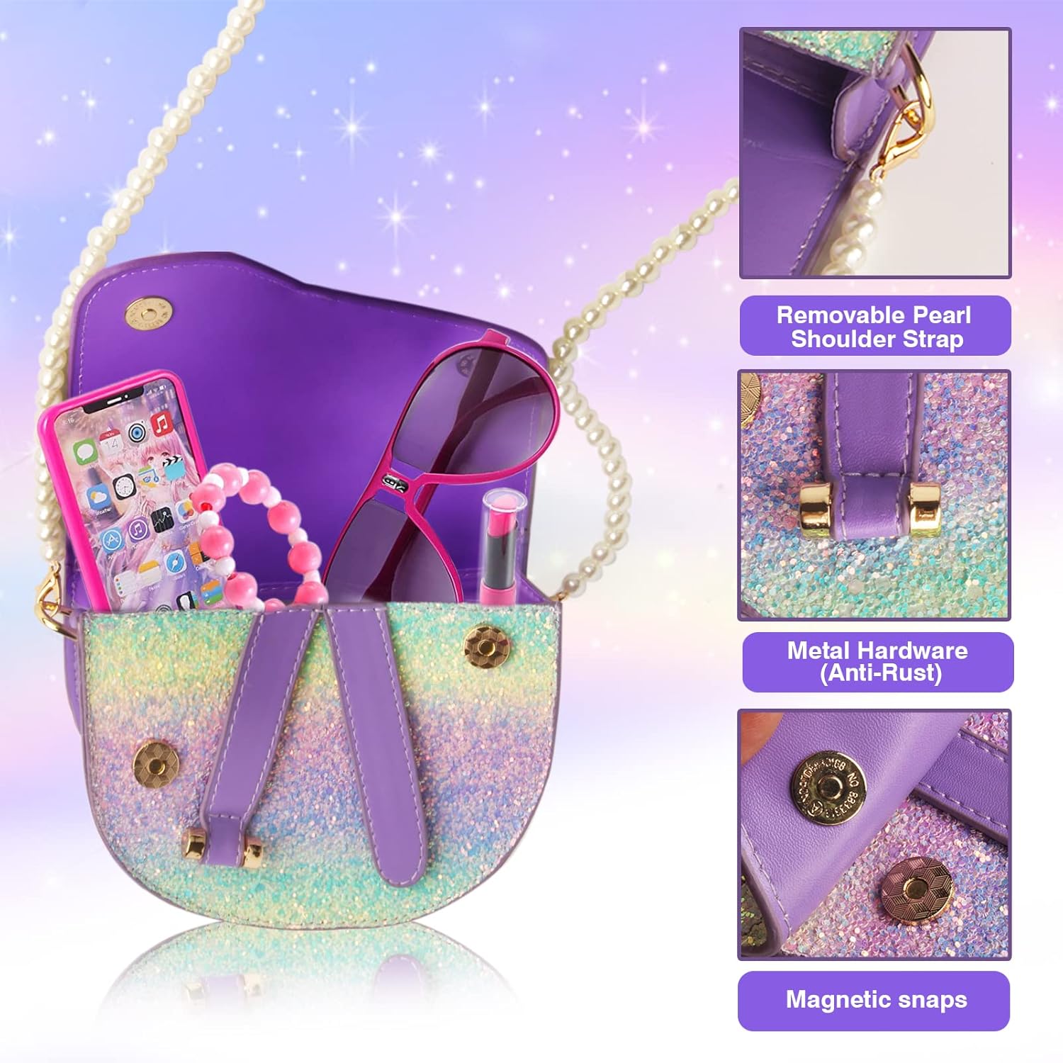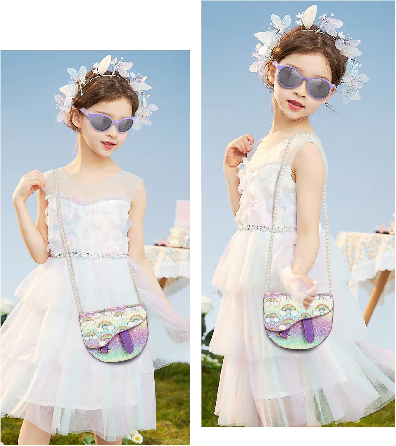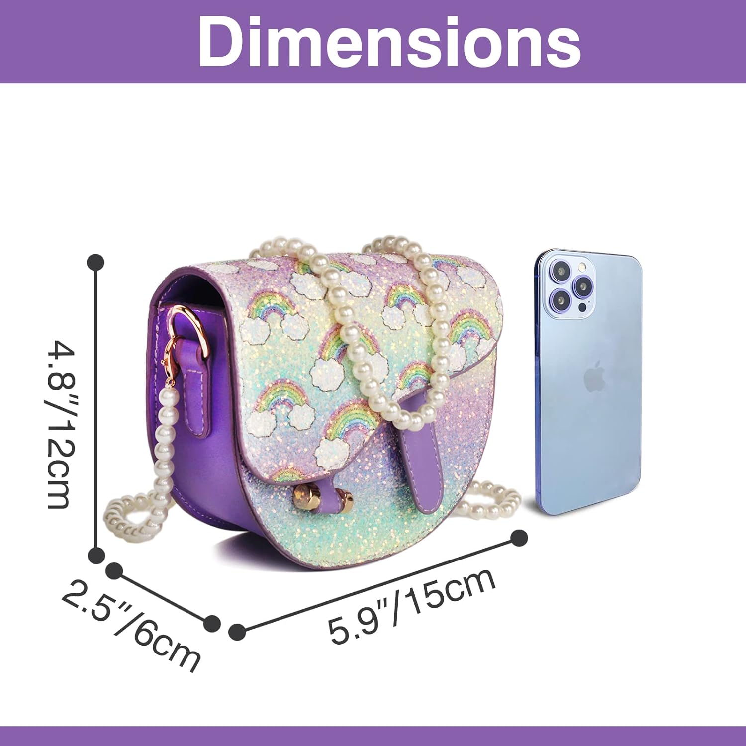 Little Girl Purses, MEL JUN Girls Purses, Kid Toddler Purse Small Girl Cross Body Dress Purse Waterproof Gift Handbags -Rainbow Purple