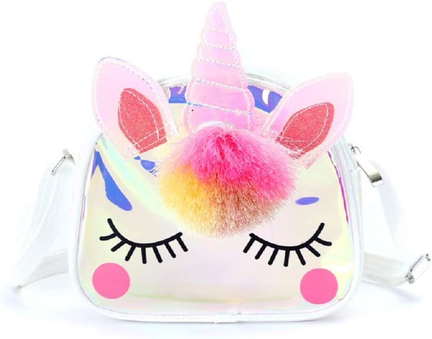 • ❤UNICORN DESIGN:Cute cartoon unicorn little girl purses,creative and eye-catching,features a glittery unicorn face with holographic unicorn horn and ears
