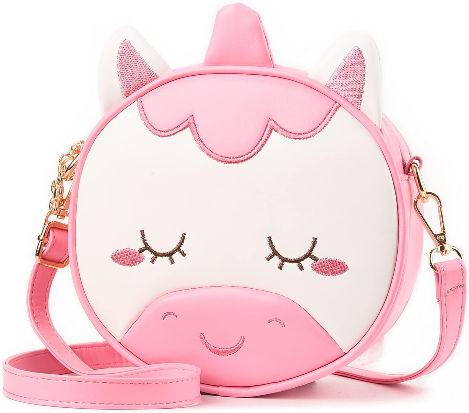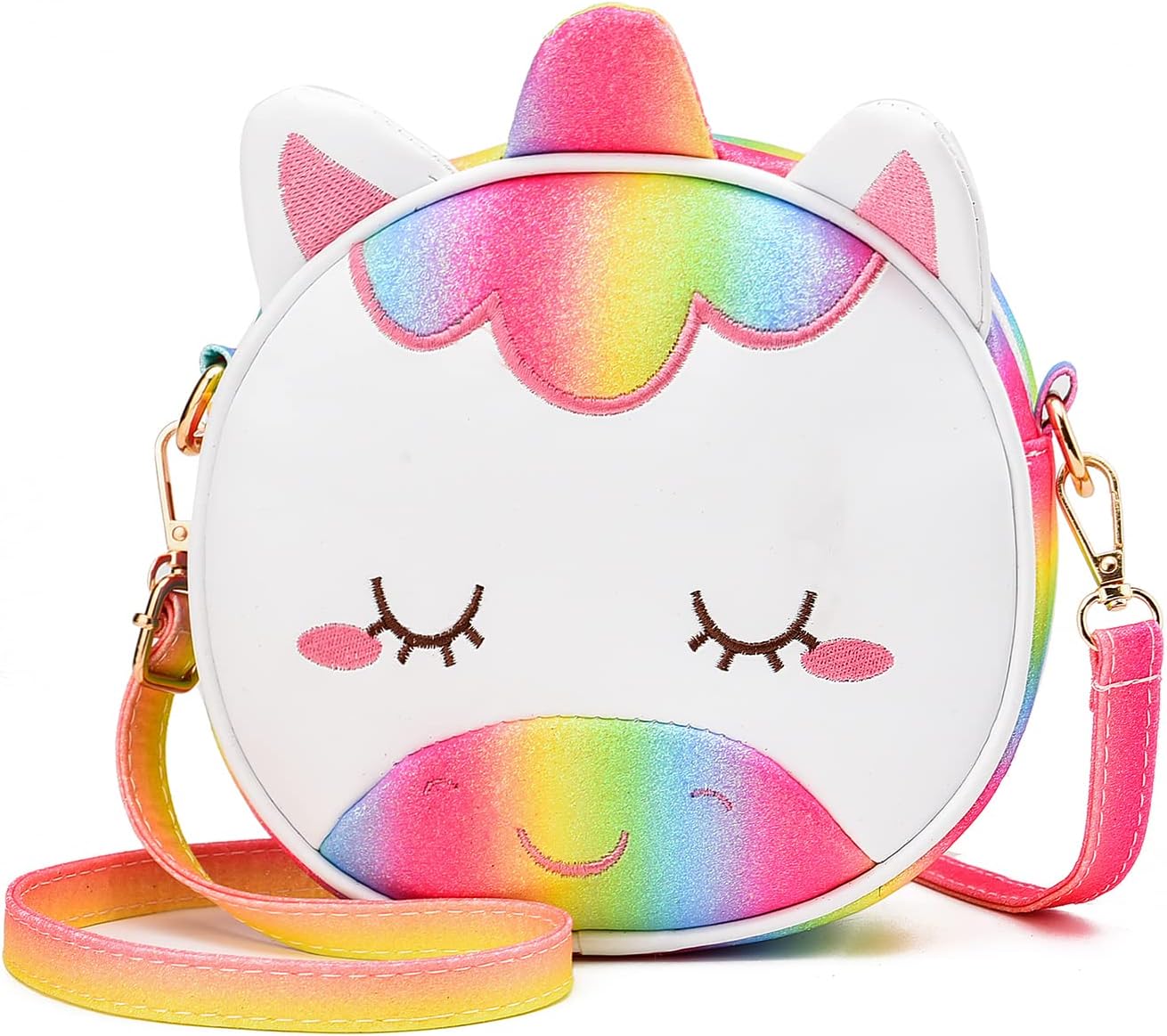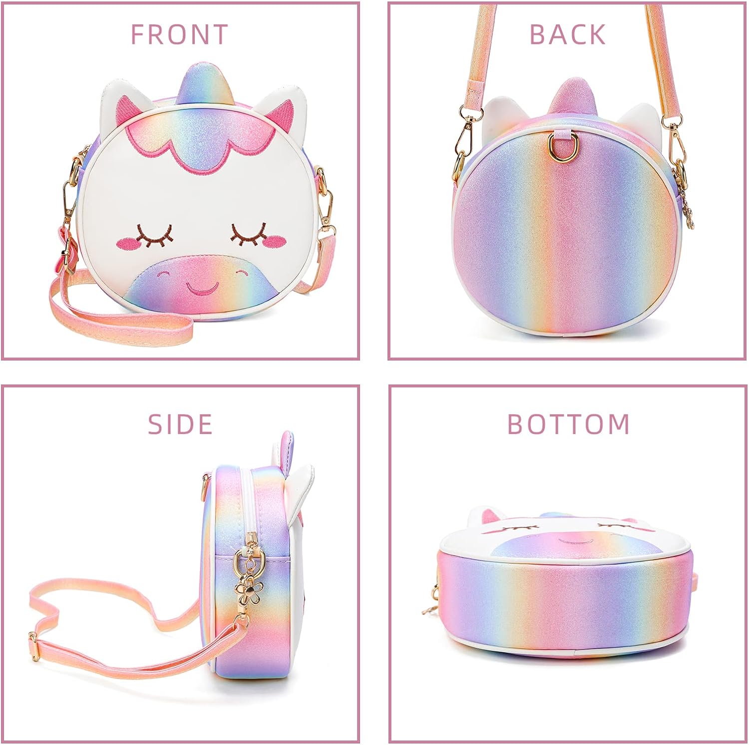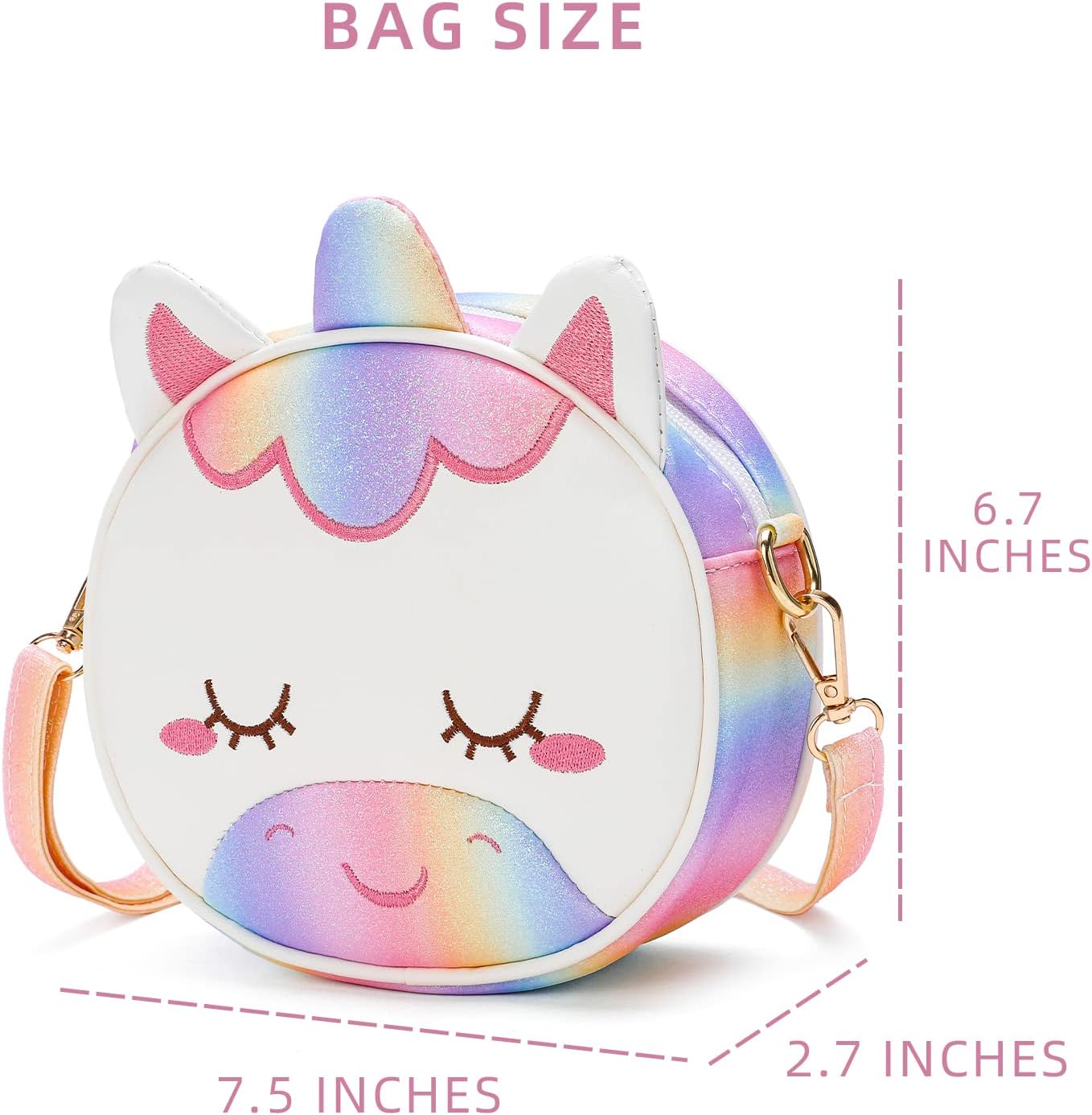 Description: This bag is recommended for 3 - 10 year old girls. Bright colors and cute characters make these crossbody purses the perfect first purse for girls. From play time to wanting to carry a purse like mommy. GIFT: Makes a perfect unique gift for your daughter, grand-daughter or niece. It can make an unexpected present for girl, pleasant surprise for your friend's child. Product Information: Material: Soft PU leather Weight: about 0.45 lb Size: 7.5"(L) x 2.9"(W) x 7.8"(H),Please confirm the size before your purchase Packing List: 1 x Crossbody Purse Warm Notice: 1.Please allow 0.1-1.2 inch wide variation due to different measurement methods. 2.Please allow little color difference due to different camera or lightenvironment. 3.Little leather smell is normal. Please putting it in ventilated place for few days,the smell will disappear. 4.Due to the transportation squeeze, the bag will have wrinkles and will not affect the use. Service purposes: Please feel free to contact us if there are any problems. We will reply within 24 hours. If you are unsatisfied for any reason we will provide a full refund no-questions-ask. “Our customers’ satisfaction is our main priority”