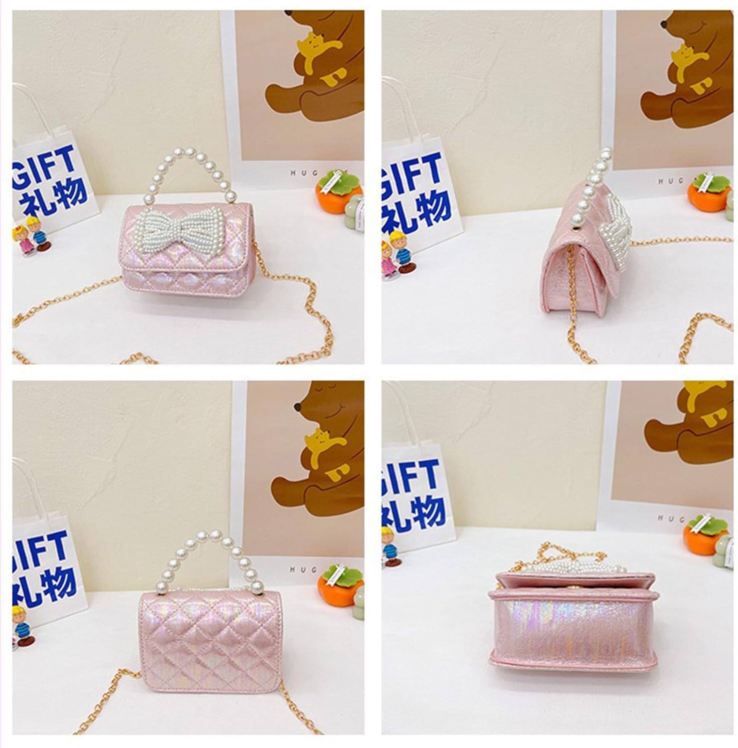 Sumlache 1PCS Little Girls Handbag, Princess Shoulder Bag, Kids Mini Purse,Leather Mini Shoulder Saddle Bag,Cute Bow Crossbody Purse, Adjustable Strap bag for Kids Girls Toddlers (pink-2)