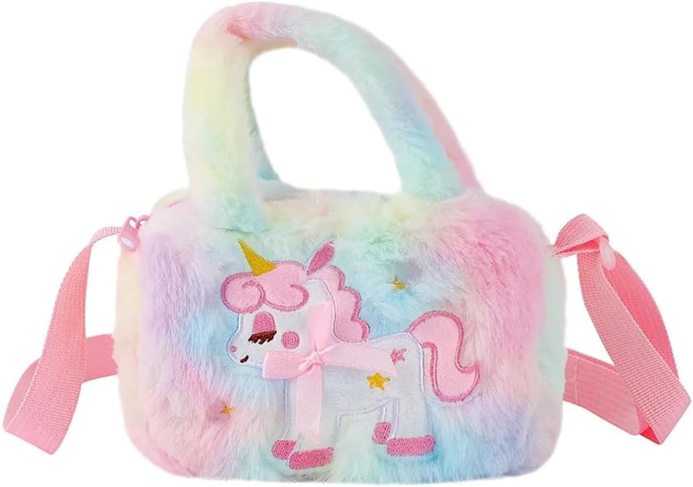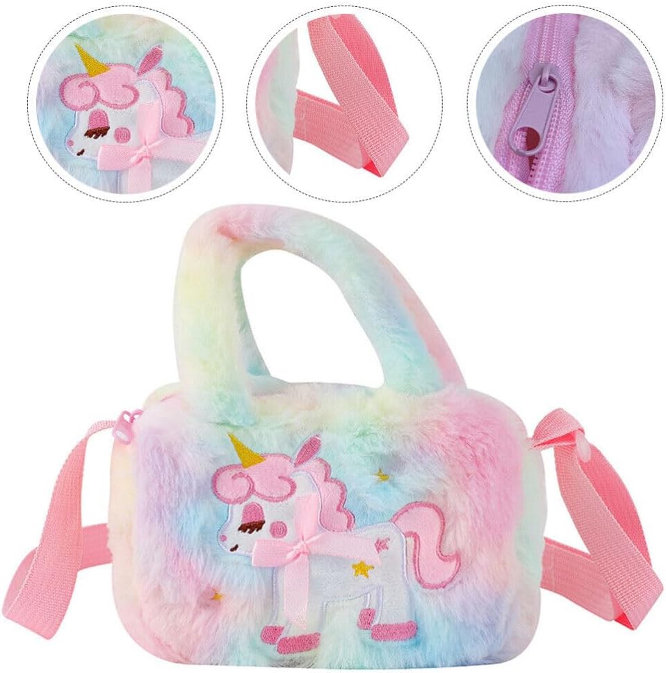 TOMVAES Unicorn Crossbody Bag Cute Messenger Bags Little Girls Shoulder Bag Small Cartoon Fashionable Handbags Tote Plush Tote Bag Storage Bags