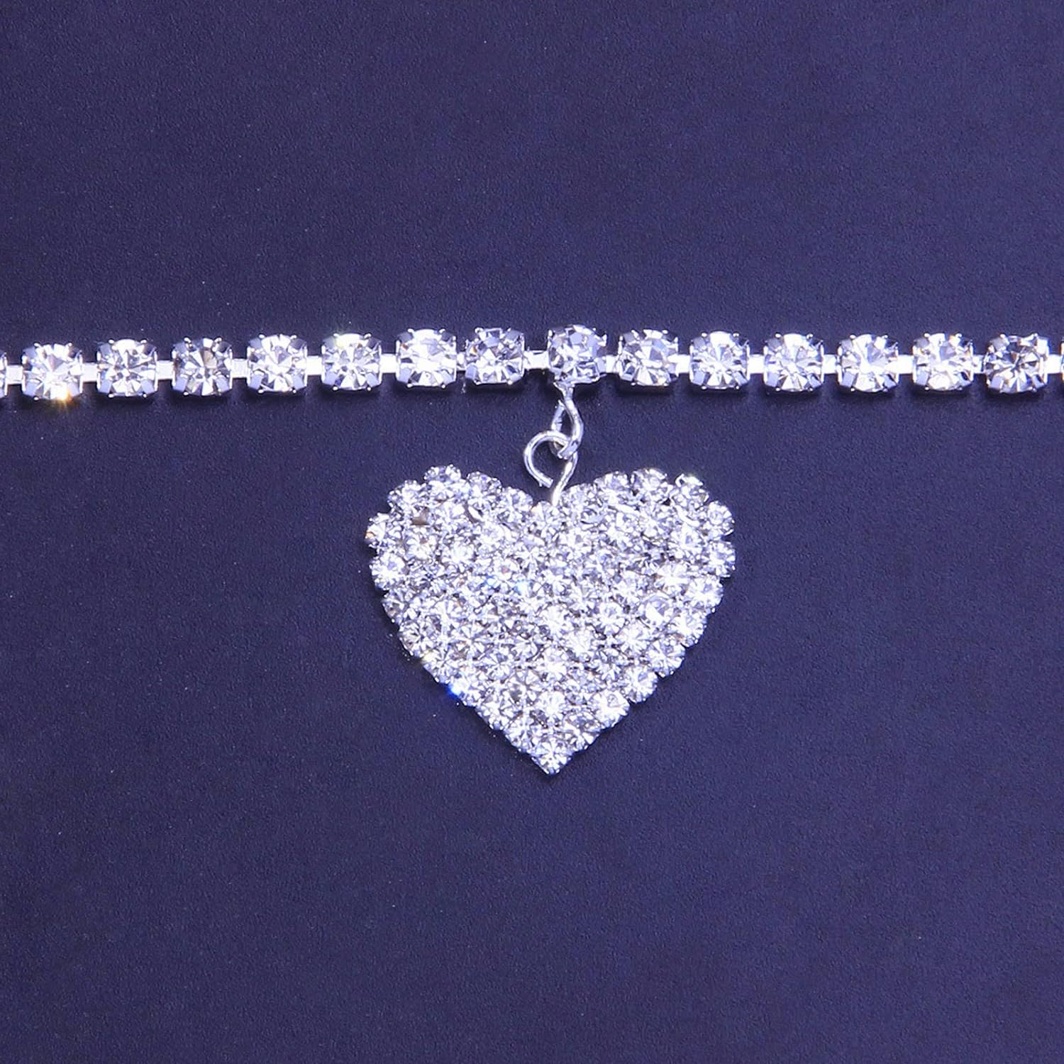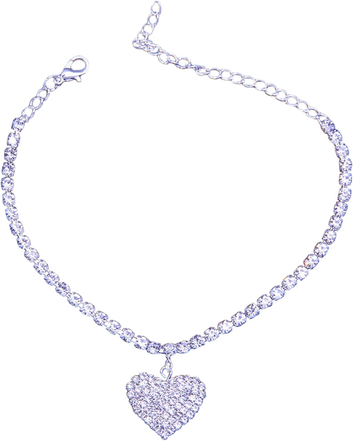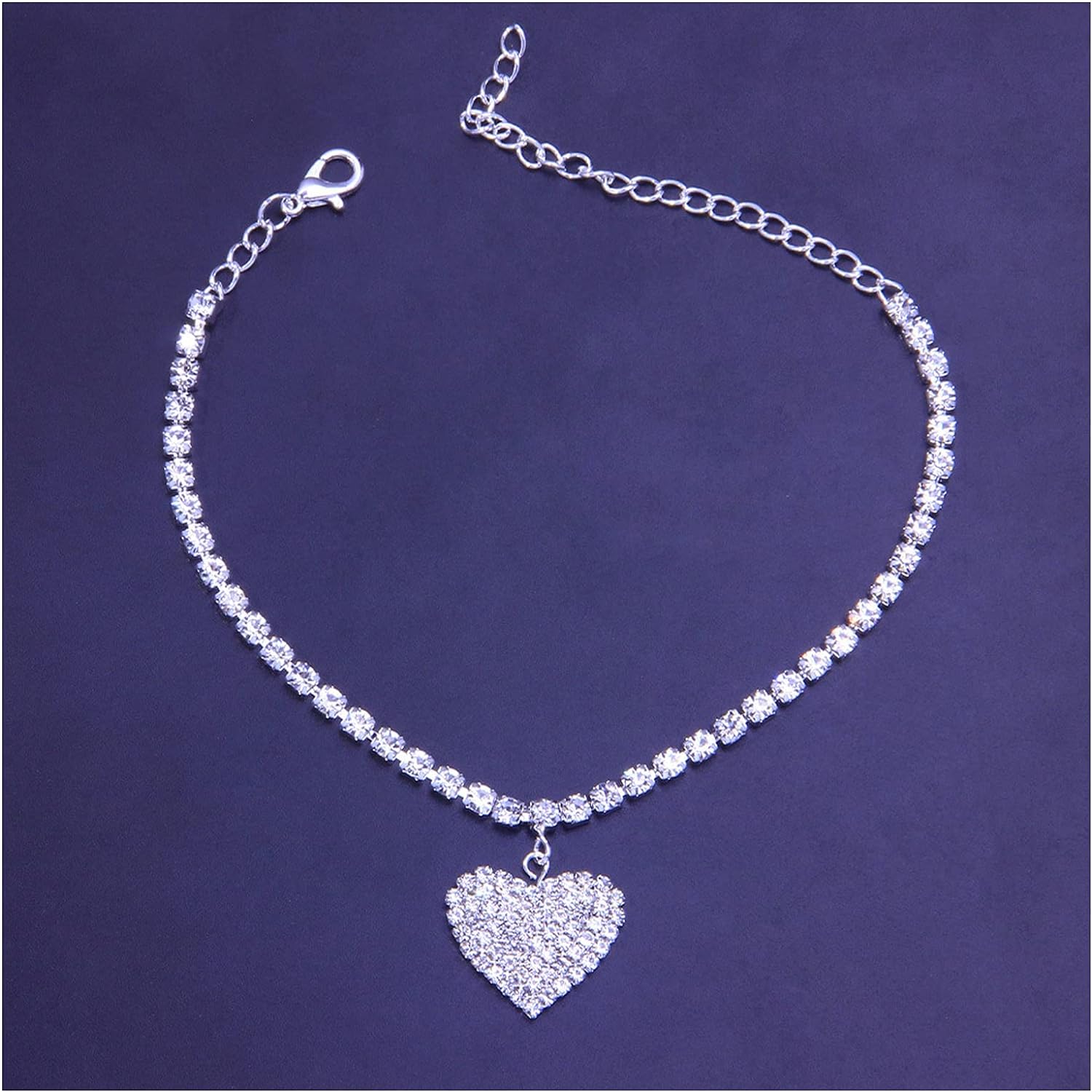 Anklet Heart Rhinestone Jewelry for Women Beach Barefoot Love Pendant Anklet Bracelet Leg Chain