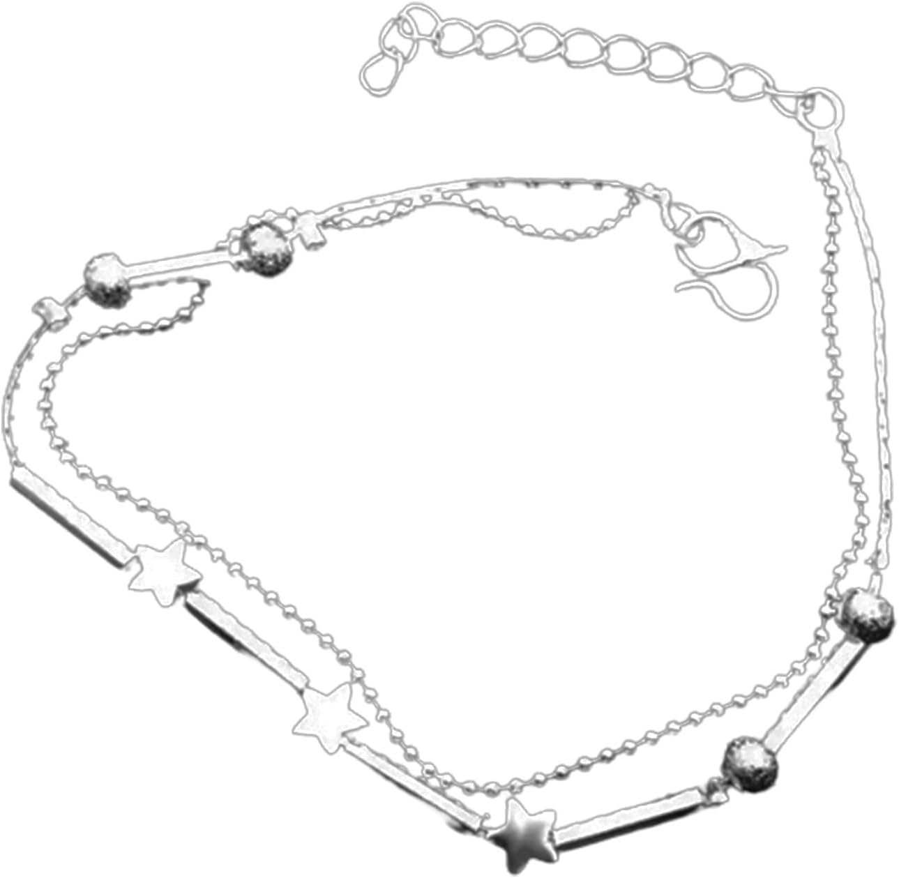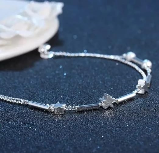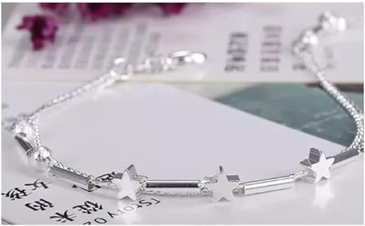 Double layer 925 sterling silver star wedding anklet Standard Size 21cm Each pcs in unit OPP bag 925 sterling silver. This anklet is the best gift for your loved ones on their special occasions. Each pcs in unit OPP bag. The double-layer anklet chain is made of pure 925 sterling silver. Our product pictures are real and shot by professionals. However, due to differences in computer/mobile displays, there can be variations of color between the actual product and your screen.