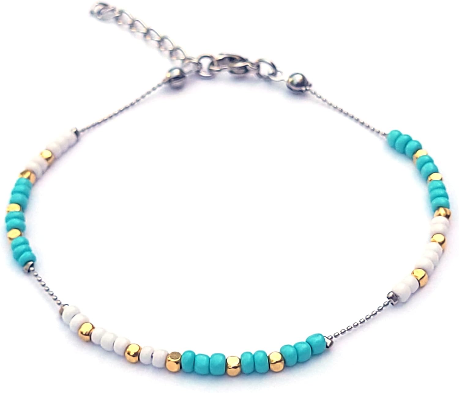Genbree Boho Beaded Anklets Turquoise Ankle Bracelets Thin Anklet Sterling Silver Foot Chain Jewelry for Women and Girls