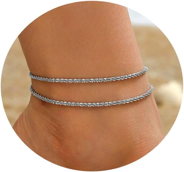 Mauzew Ankle Bracelets for Women 18K Gold Plated Dainty Layering Anklets for Women Layered Twisted Rope Coin Chain Anklet Bracelets Waterproof Beach Summer Foot Jewelry Gifts