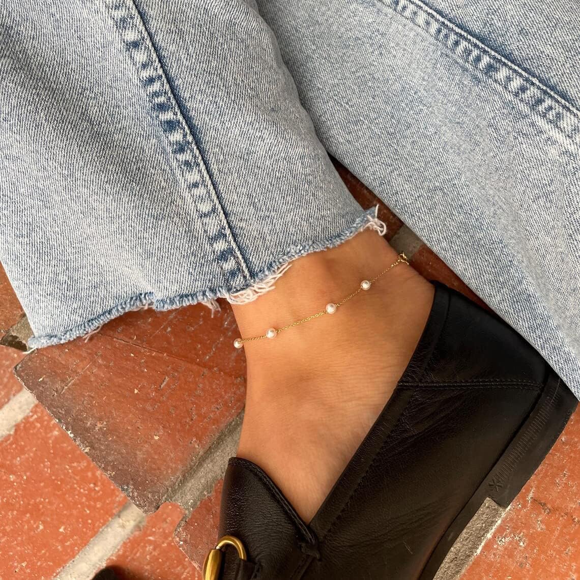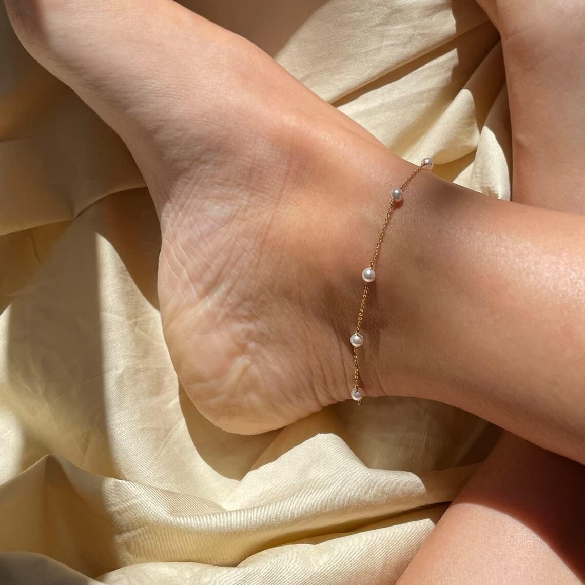 - 【Pearl Chain Degign】-Perfect accessory to wear to the beach a must have to add to your collection for dainty pearl beaded chain anklet. The anklet can be worn on it's own or could easily be layered.