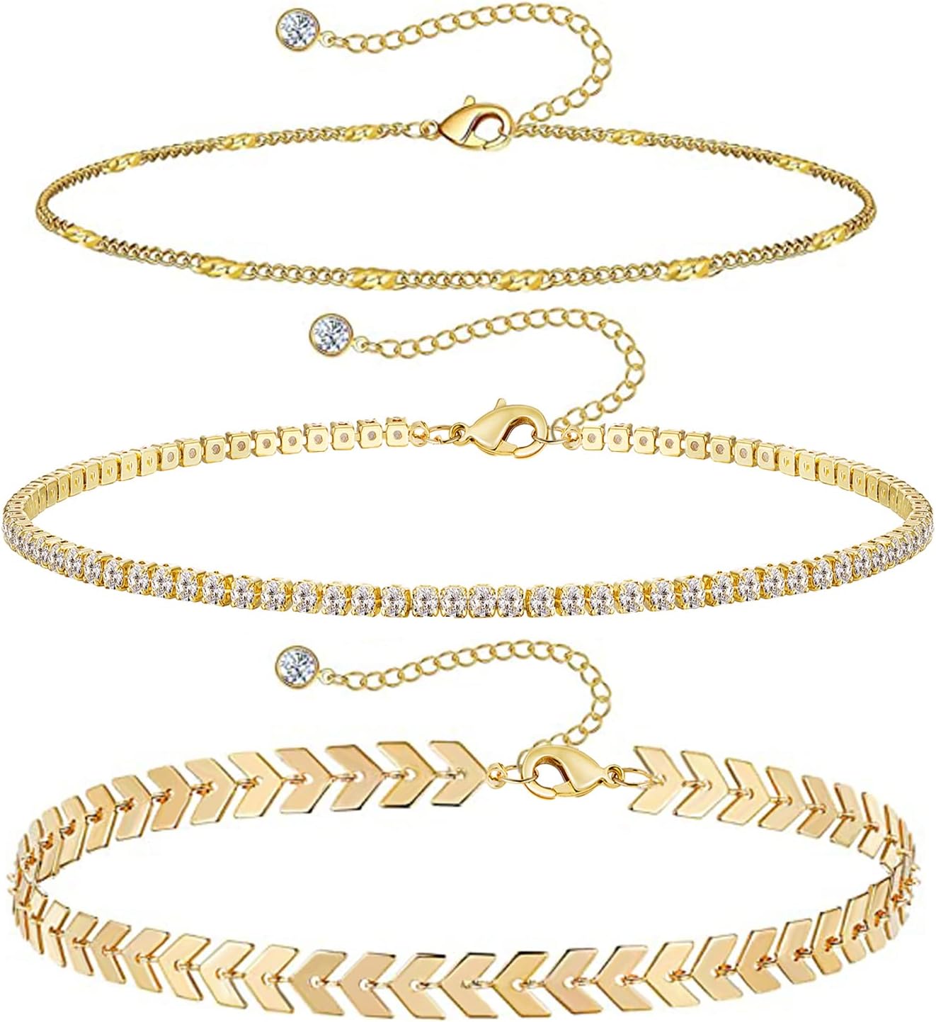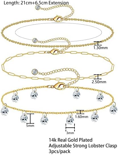 - Anklet Material: Made of high quality brass with AAA+ cubic zirconia, 14k real gold plated, lead free, nickel free and hypoallergenic, great for sensitive skin and all-day Wear.