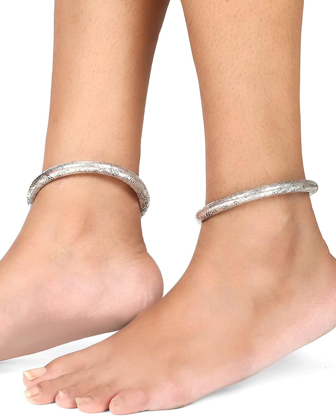 Yellow Chimes Classic German Silver Oxidised Antique Design Traditional Kada Anklet for Women and Girls…