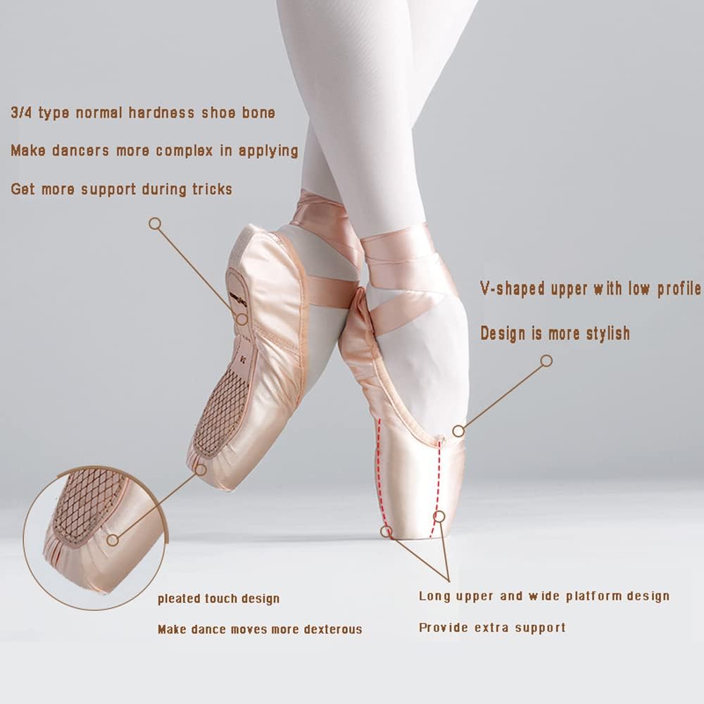 Ballet Pointe Shoes Soft Satin And Canvas Dance Shoes,with Sewed Ribbon For Girls Womens(recommended To Choose One Size Up)