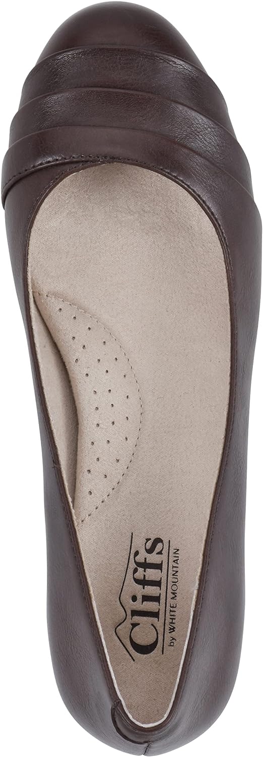 Cliff Clara ballet flat is a must have for your shoe wardrobe This comfort flat features a round toe with soft pleasting detail Wear it all day all night Your feet will love the memory foam cushioned insole nad the flexible treaded outsole The perfect shoe to dress up or dress down