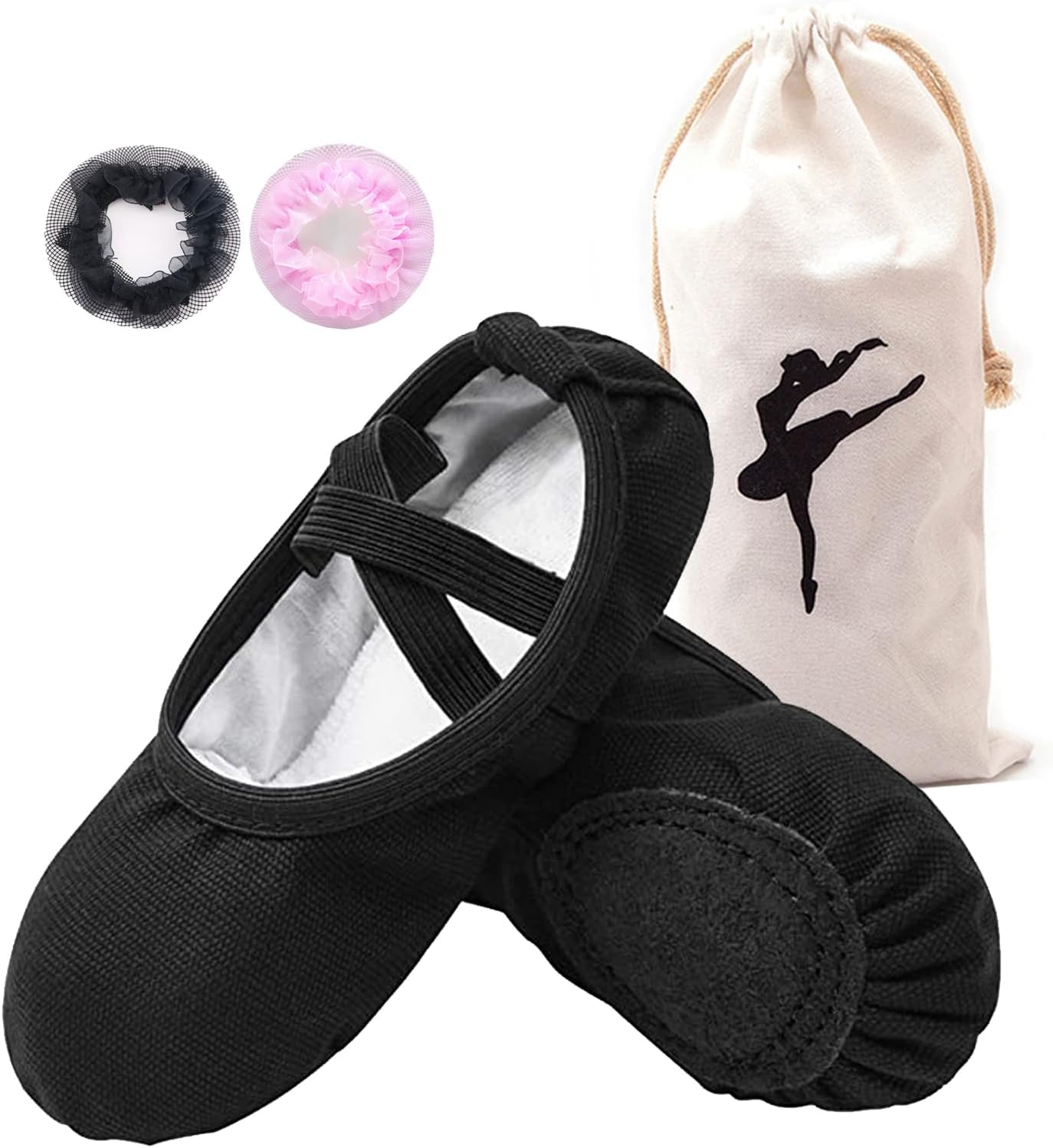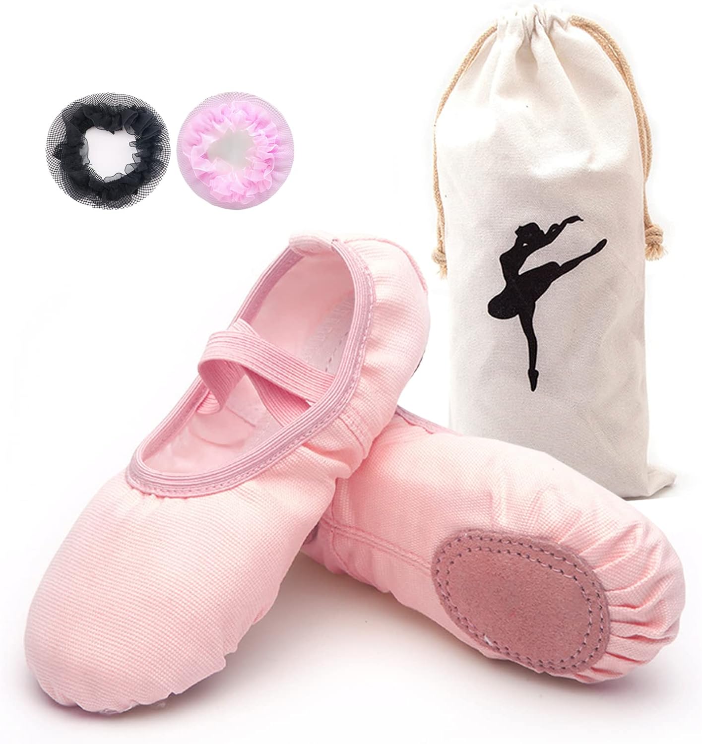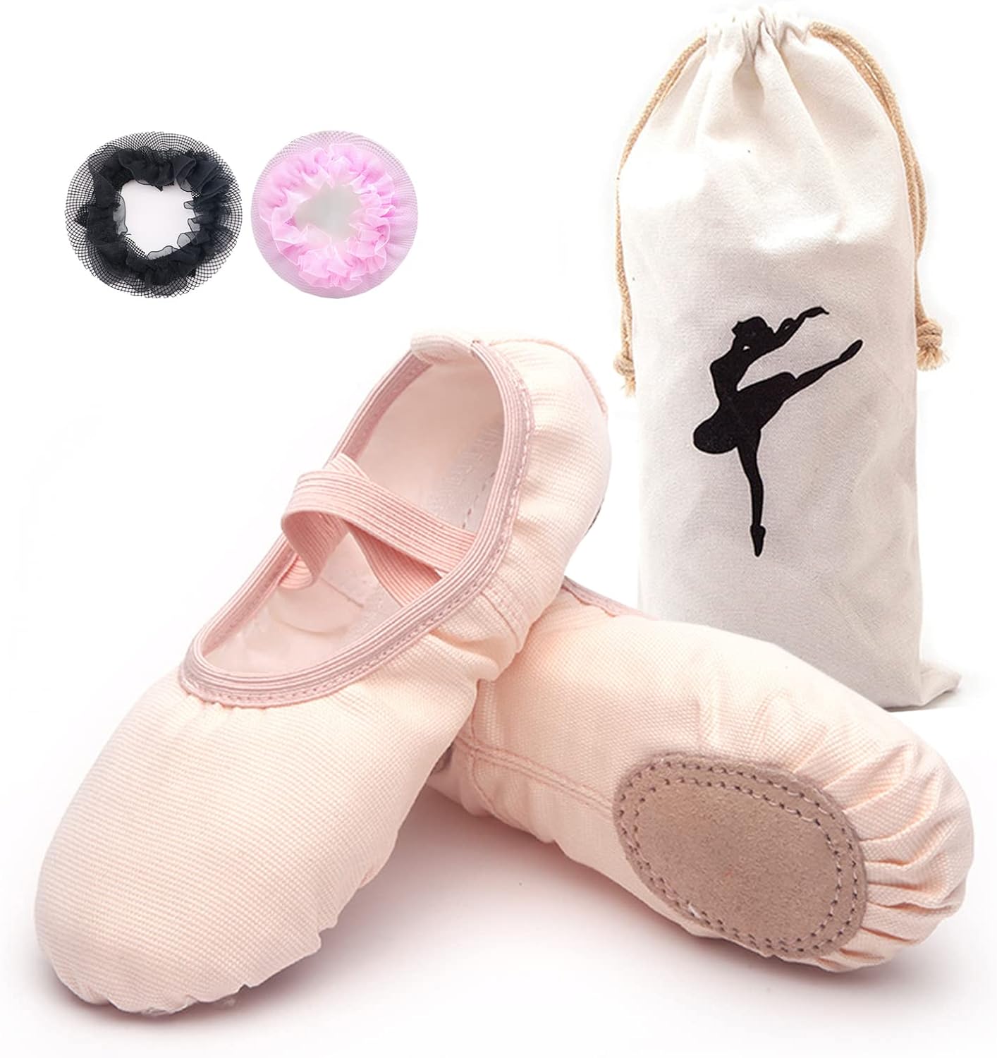 Girls Canvas Ballerina Flats Leather Sole Dance Shoes for Toddlers Leather Yoga Shoes/Ballet Shoes for Dancers