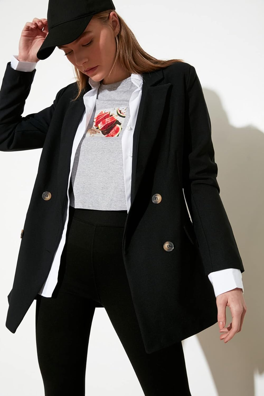 Trendyol Women's Black Button Oversize Craissile Blazer Jacket Trendyo – BUYO