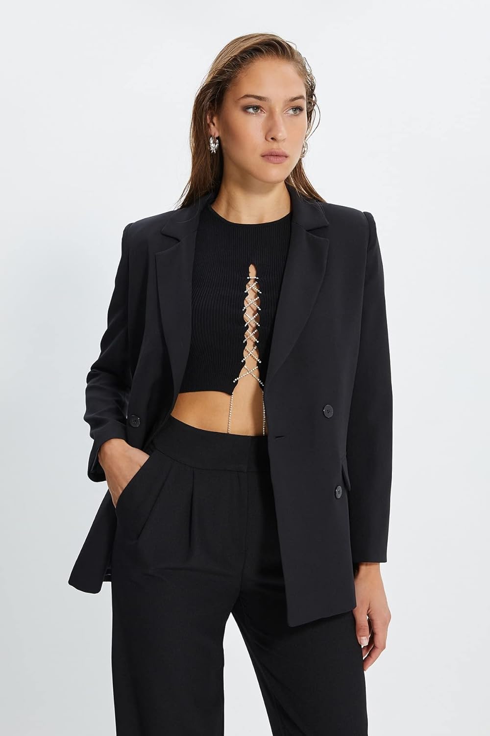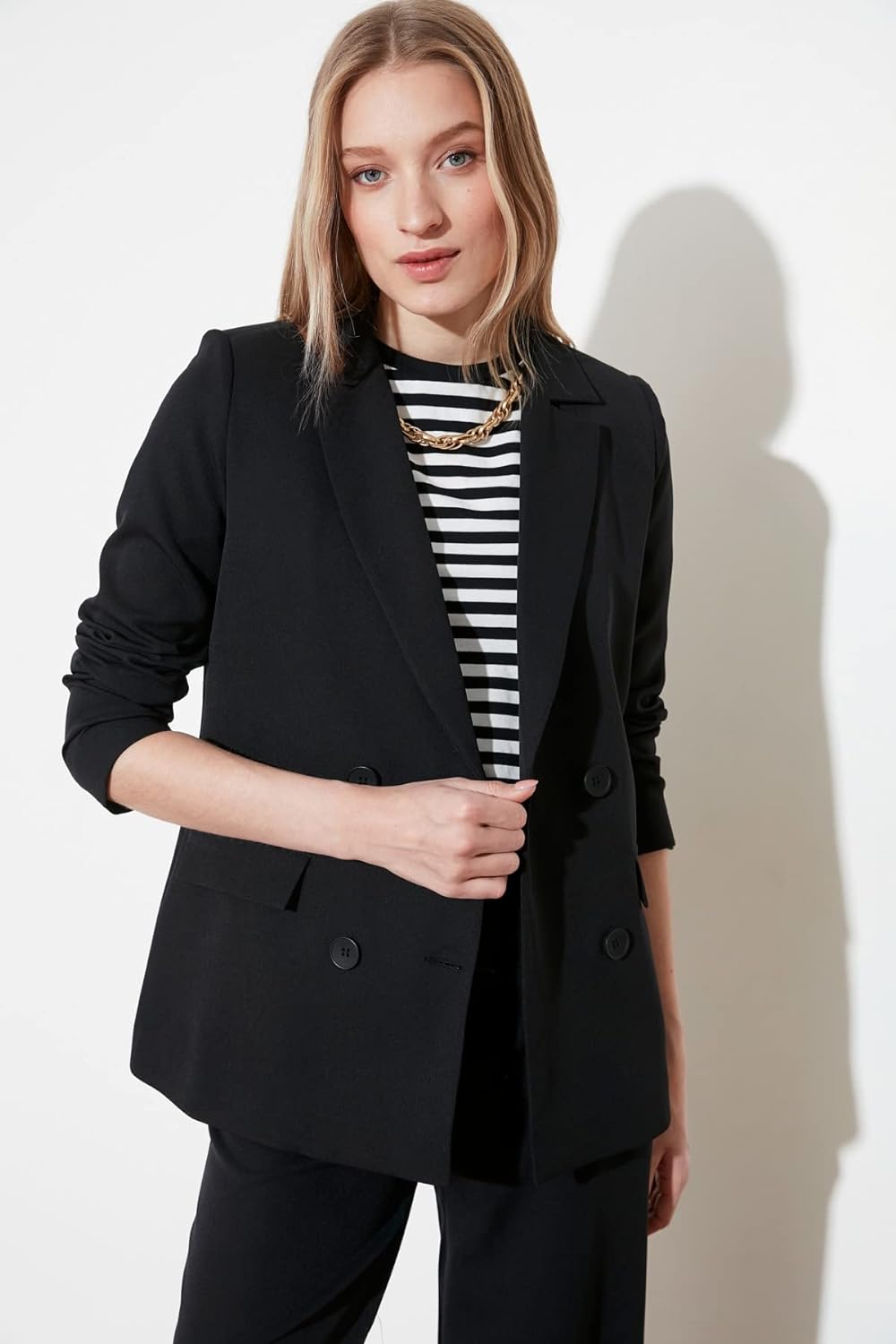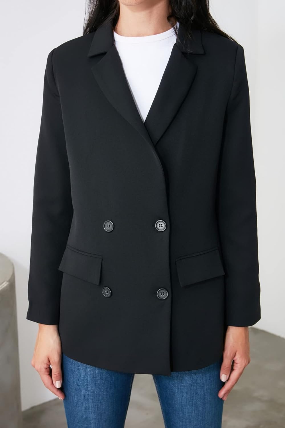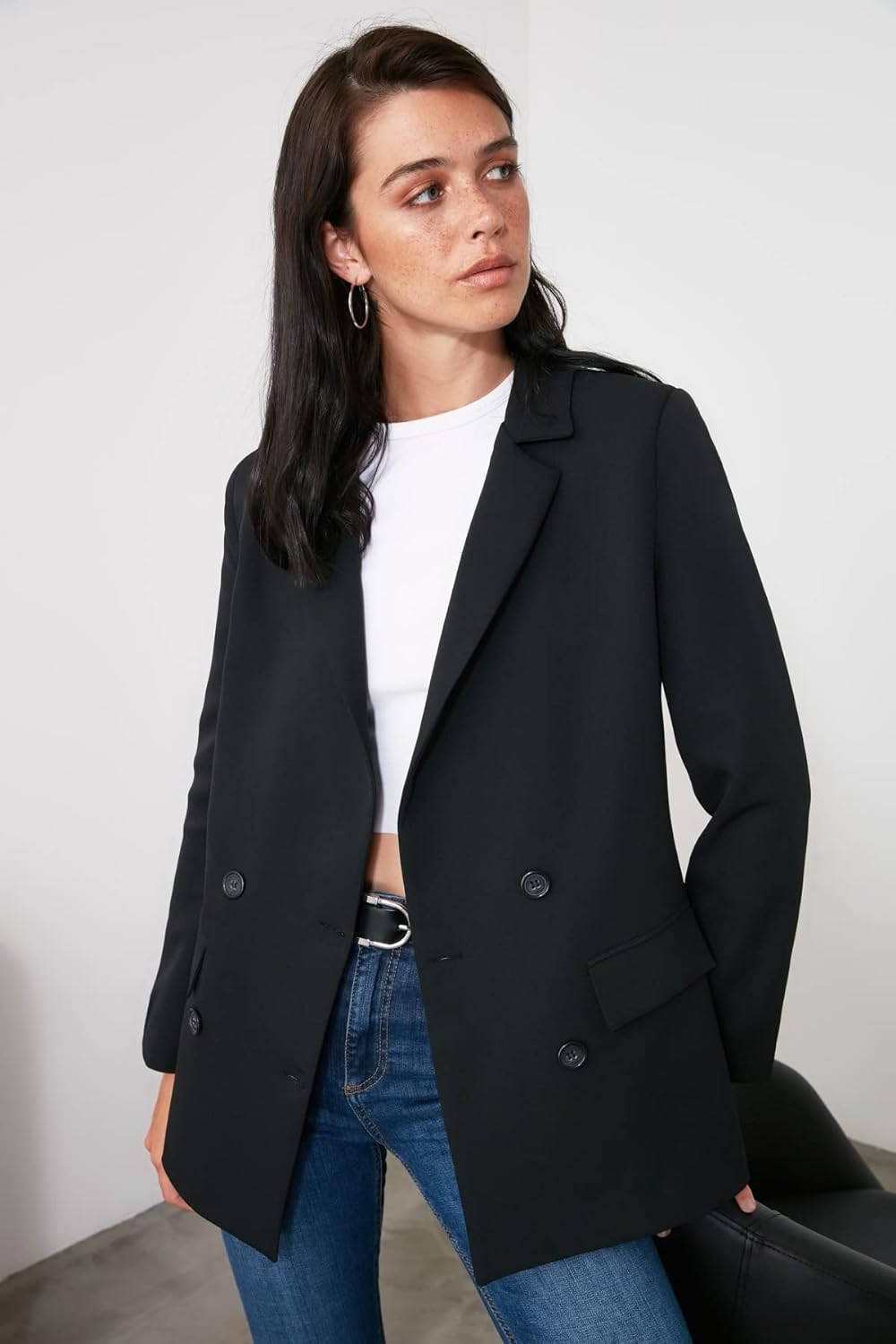 - Design: This is a Lapel collar Regular Anthracite Jackets for Women / Girl. This Woven Jackets has a Double-breasted design with a Plain pattern.