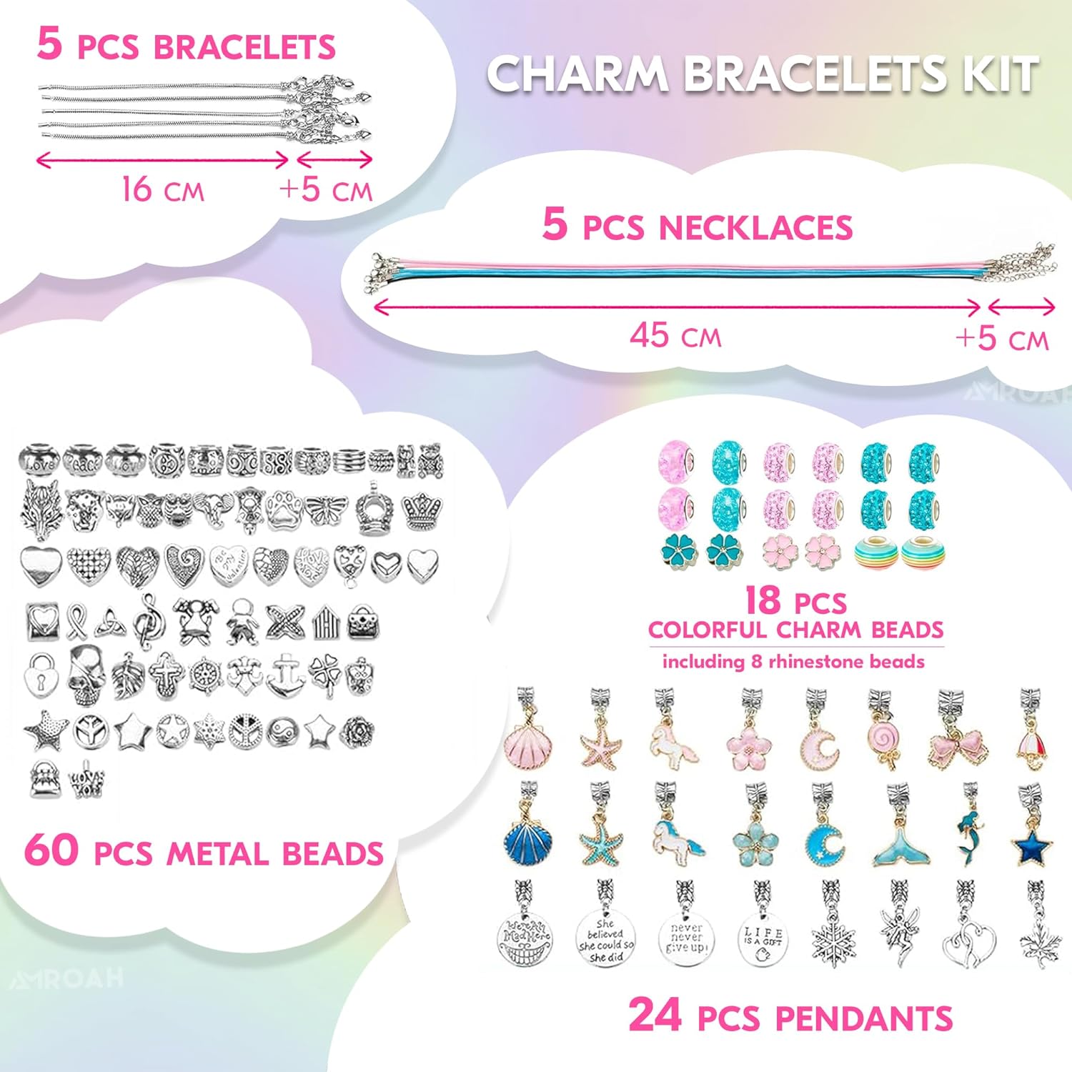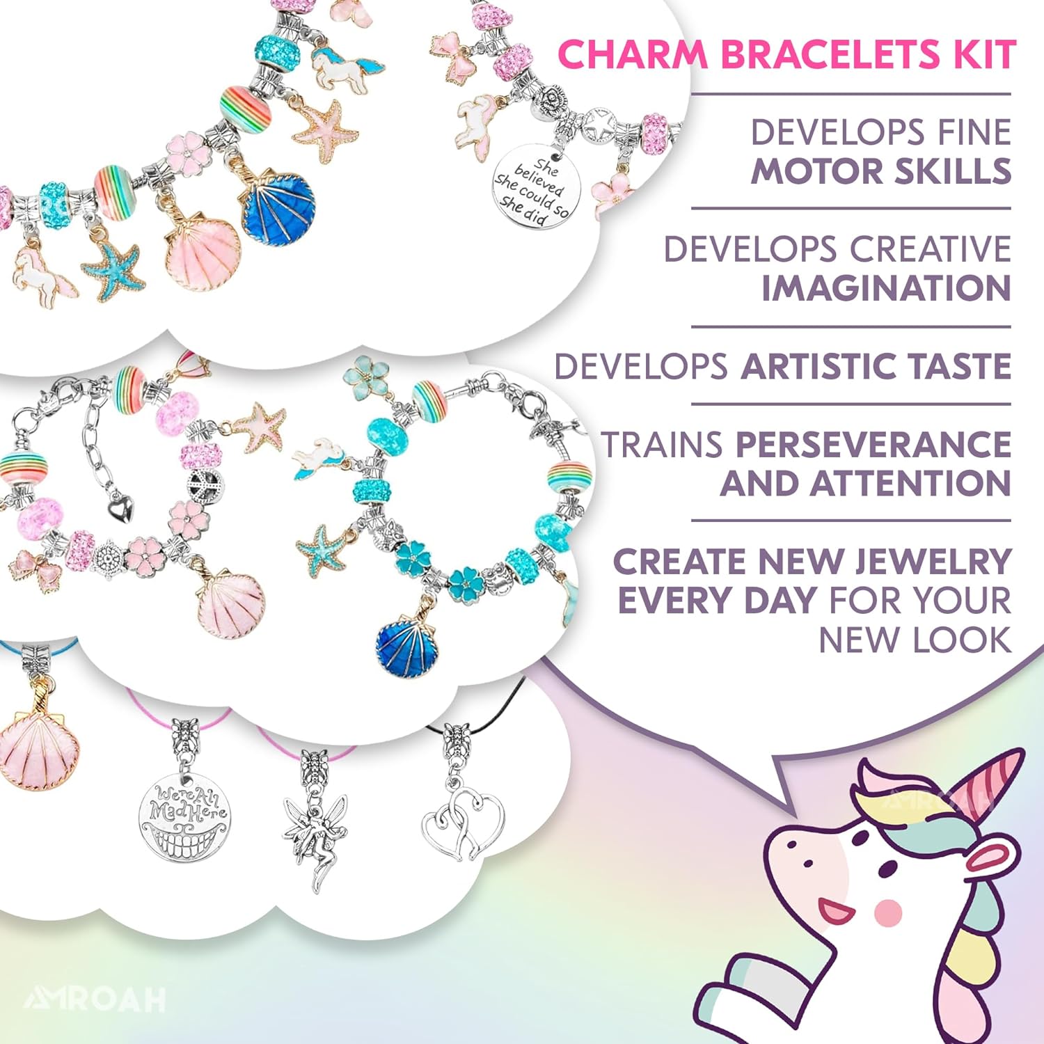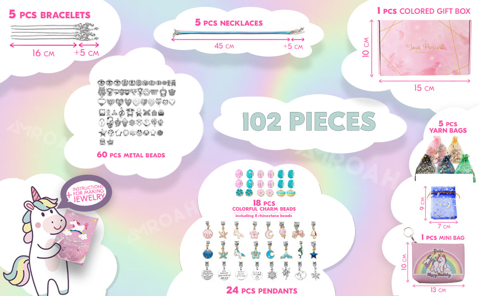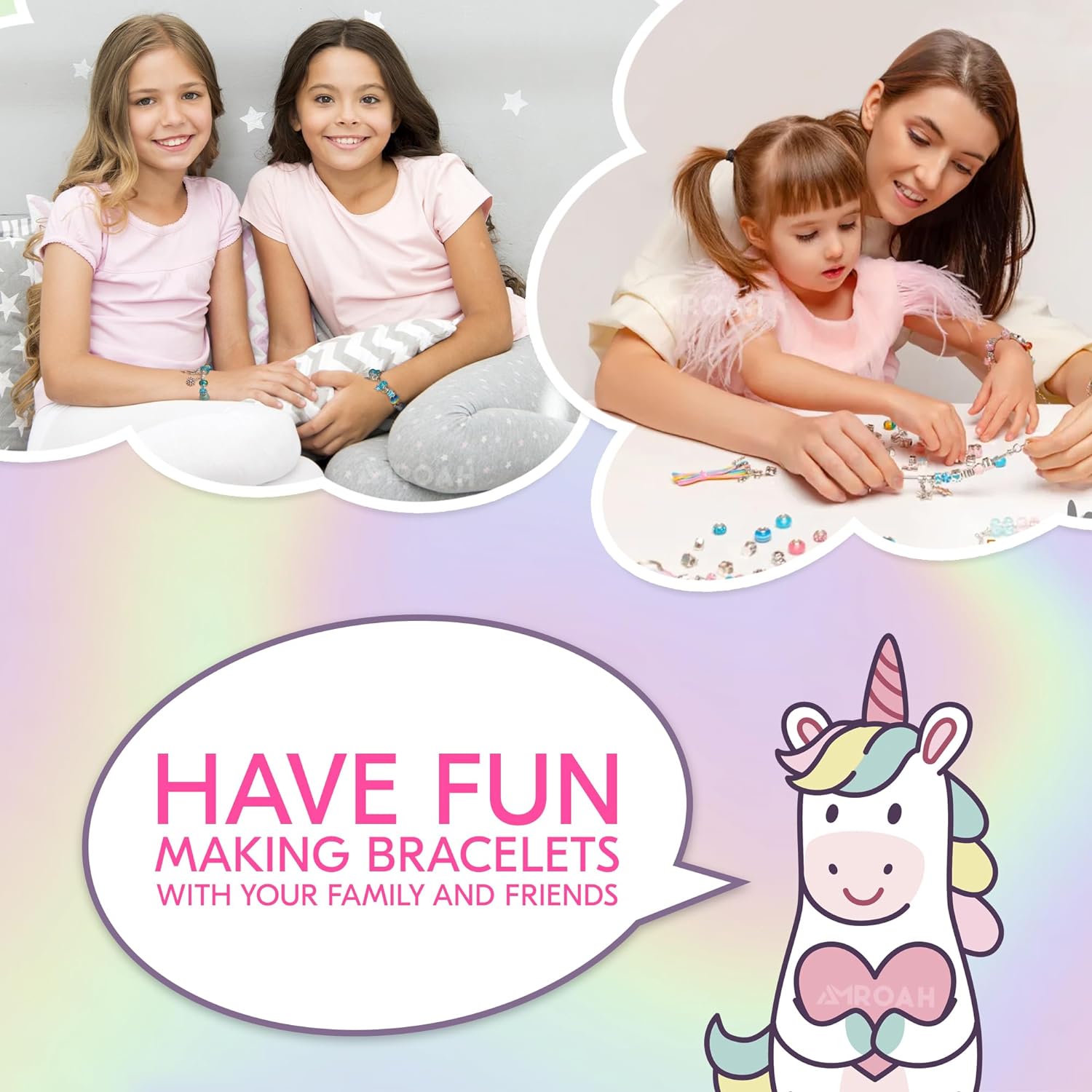 AMROAH 102 PCS Charm Bracelets Kit, Jewerly Cute Creativity Toy Making Bracelets Kit Necklace with Unicorn Diy Craft Set Birthday Gift Present for Girl Teen Age 4 5 6 7 8 9 10 11 12 Year Old