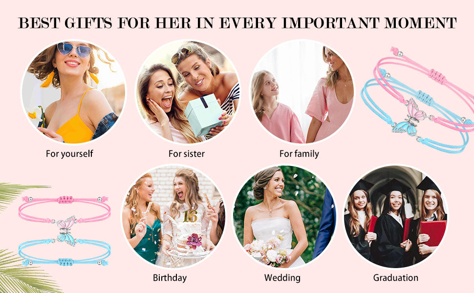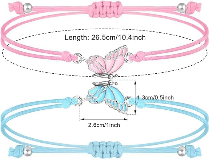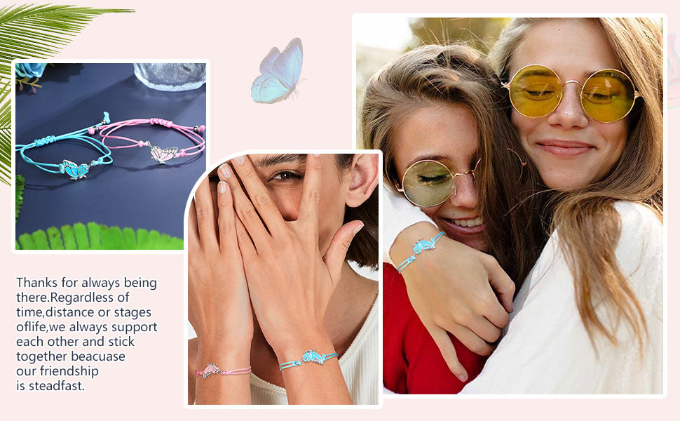 - 🦋【Friendship Bracelets for Women】You will receive 2pcs matching butterfly bracelets. This bracelet is specially designed for best friends and is suitable for wearing with sisters or best friends.