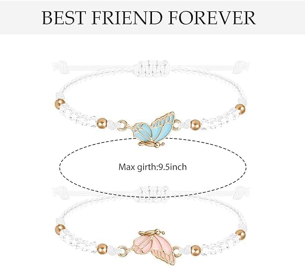 Best Friend Bracelets for 2 Butterfly Matching, BFF Bracelets, Adjusta – BUYO
