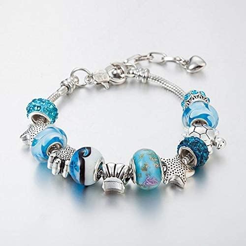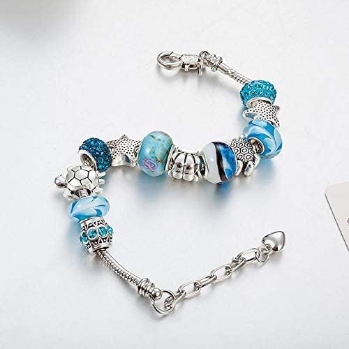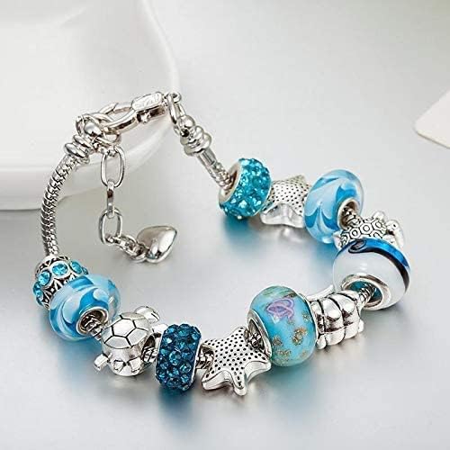 Pendant Bracelet Ocean Series Blue Crystal/Glass Pearl Sea Star Shell Bracelet Lady Crystal Jewelry Bracelet Valentine's Day Gift(silver)