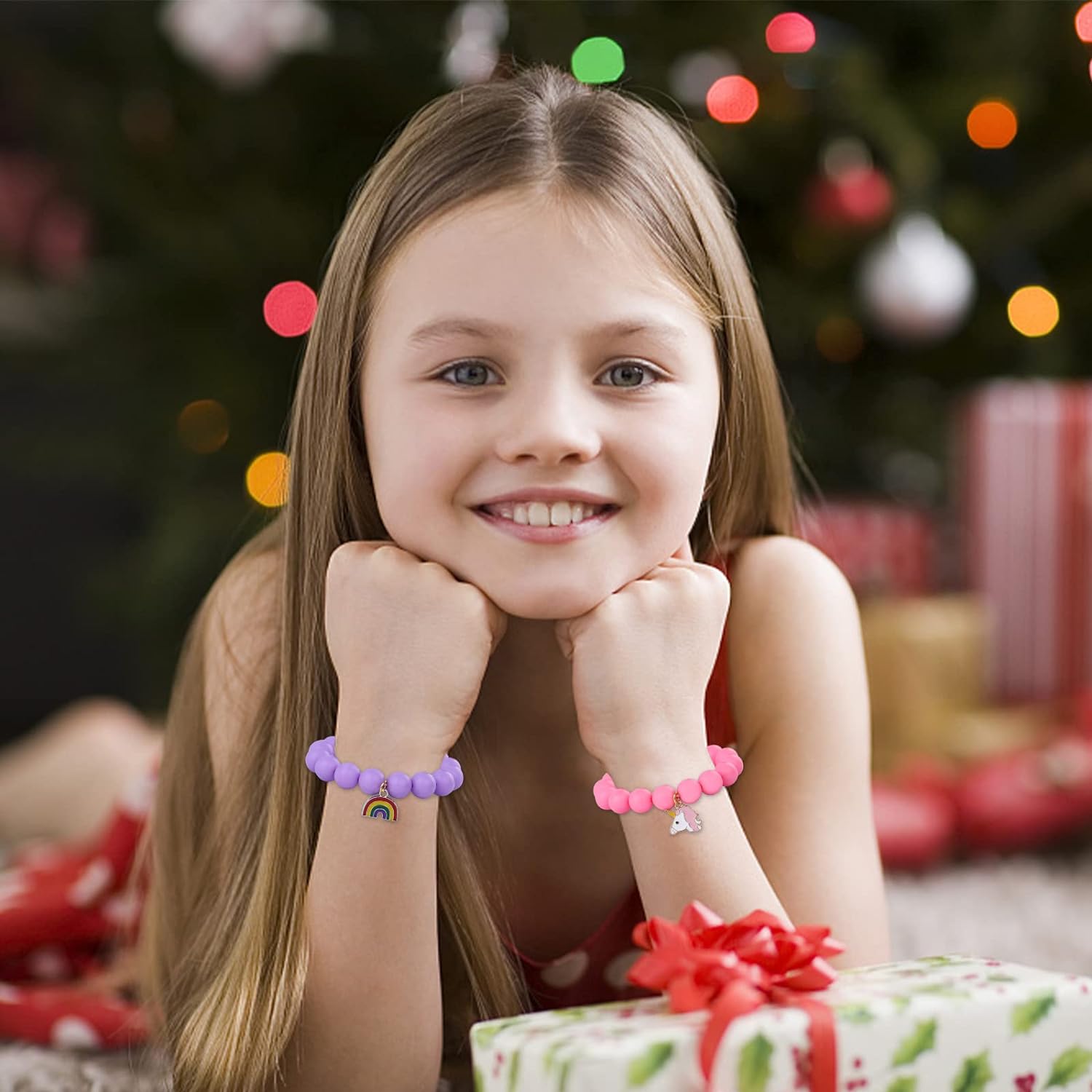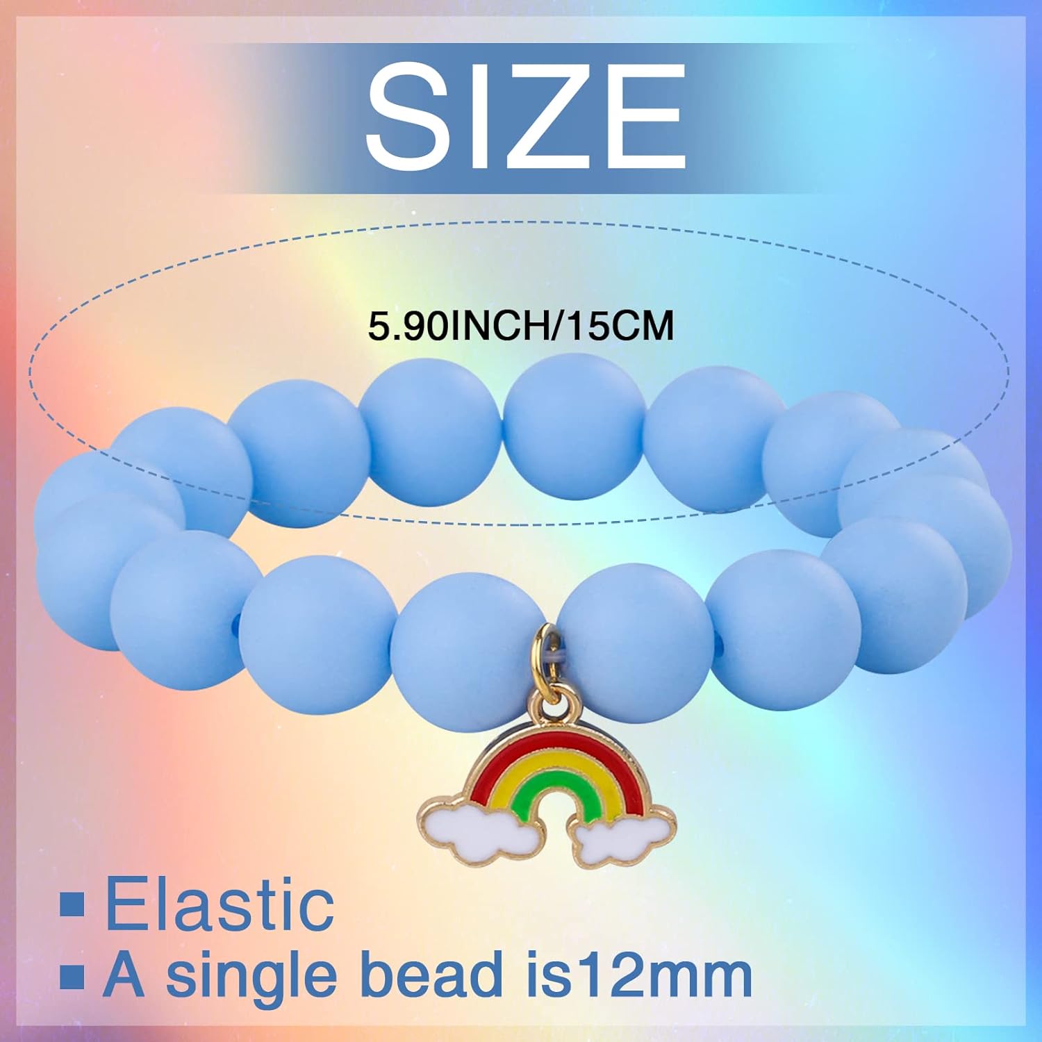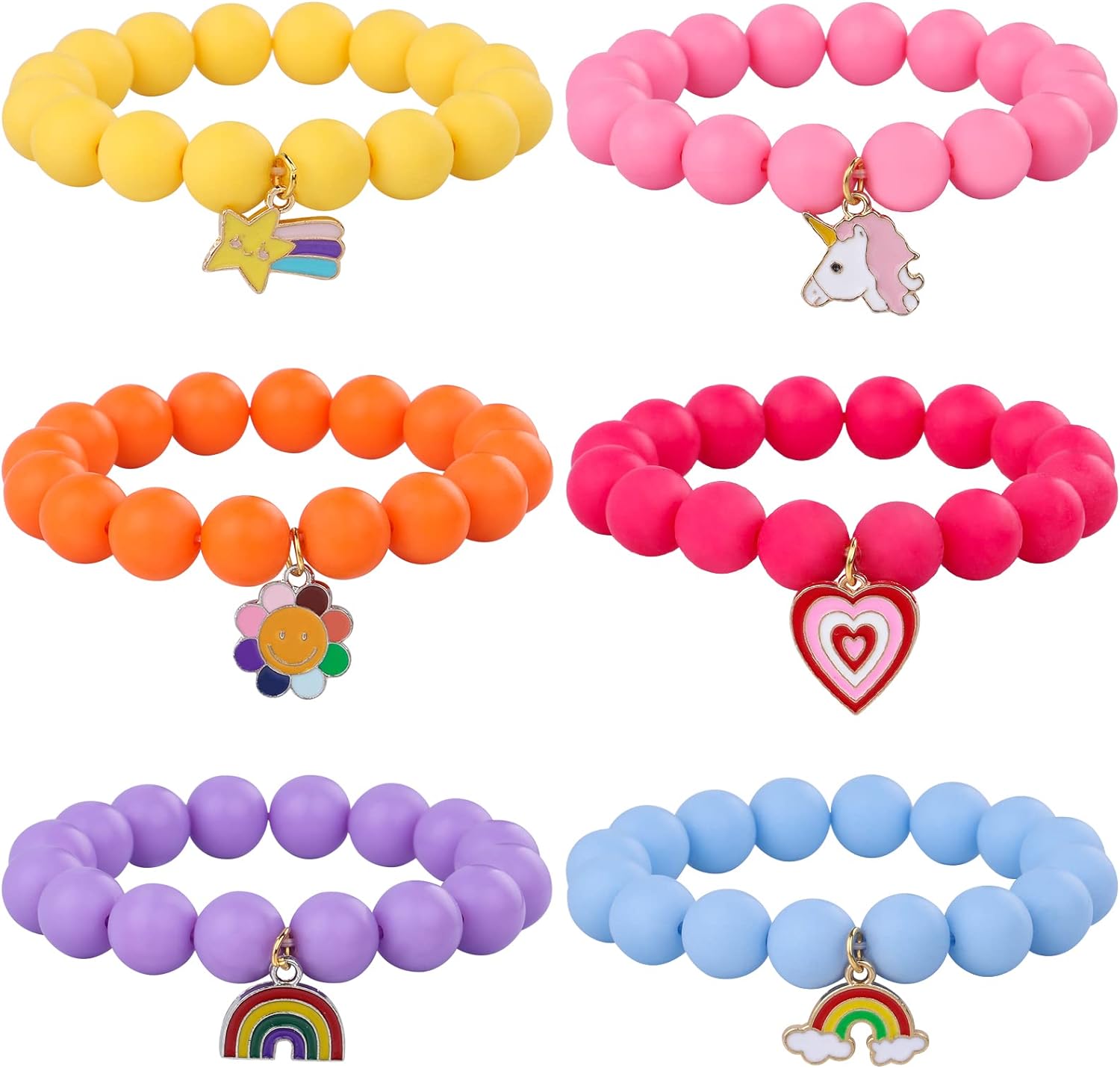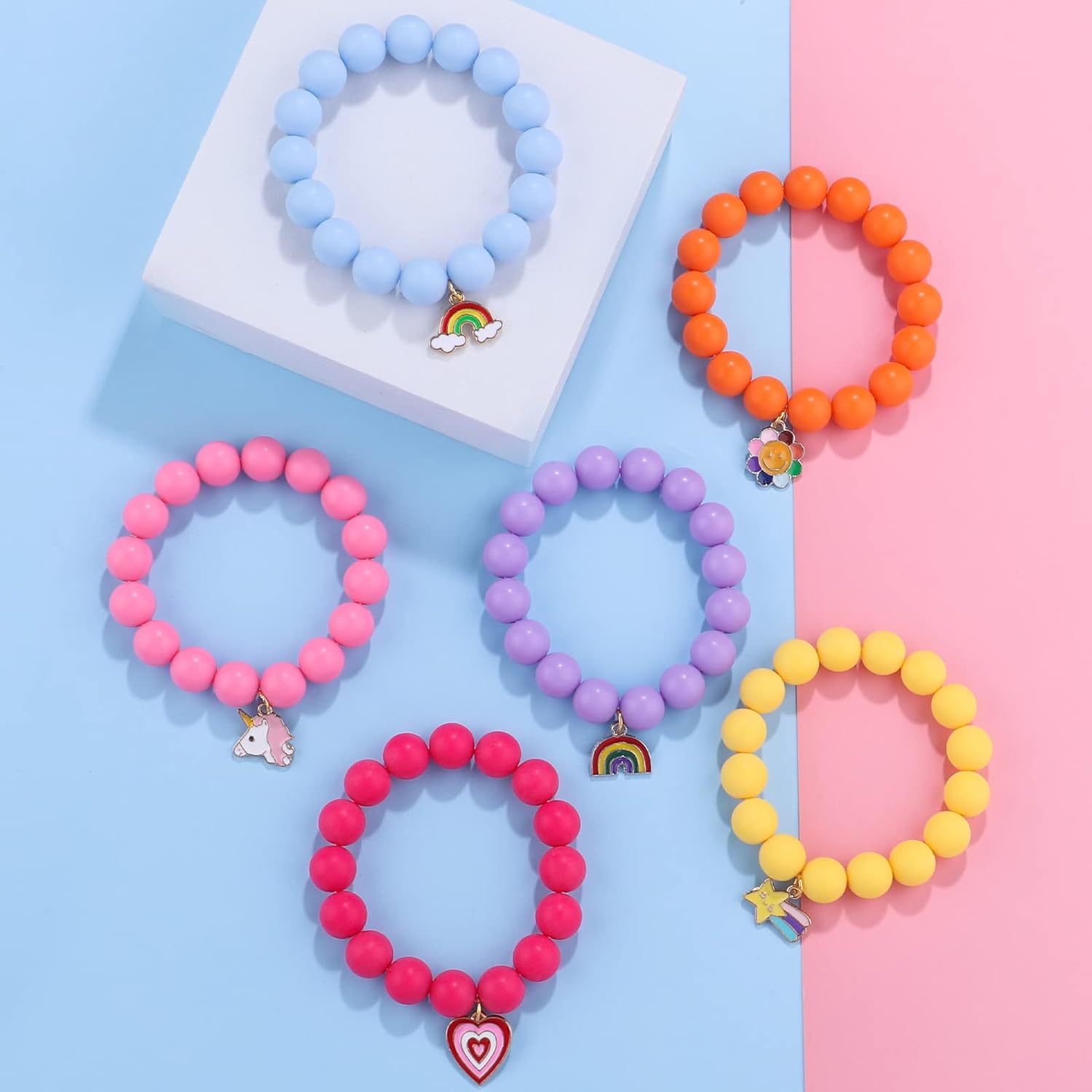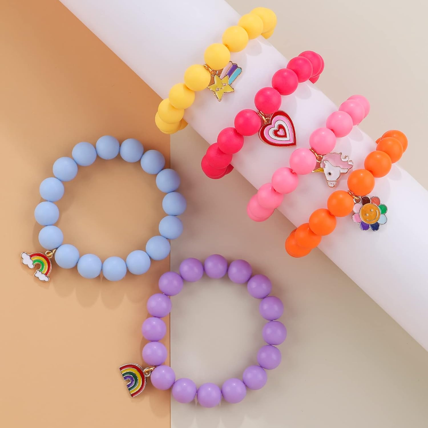 6 PCS Beaded Bracelets for Kids Girls Unicorn Heart Rainbow Charm Bracelets Cute Elastic Friendship Bracelets