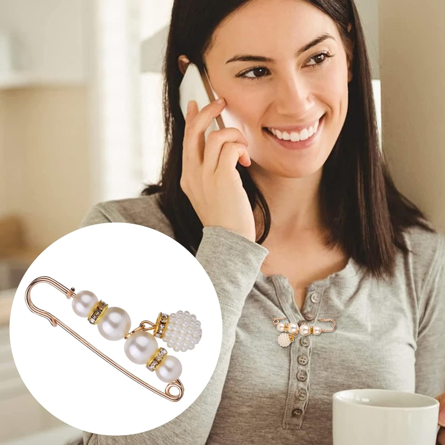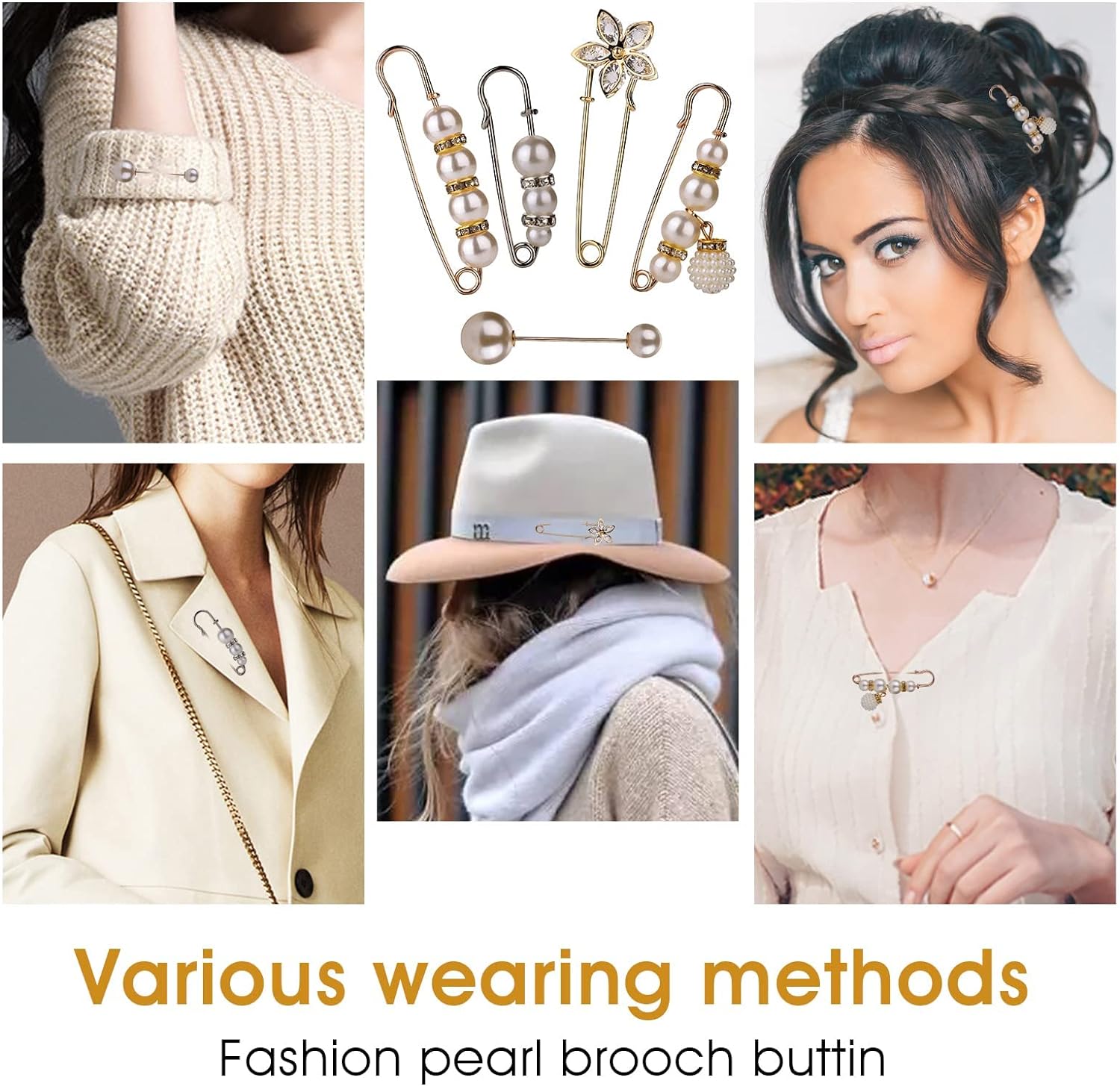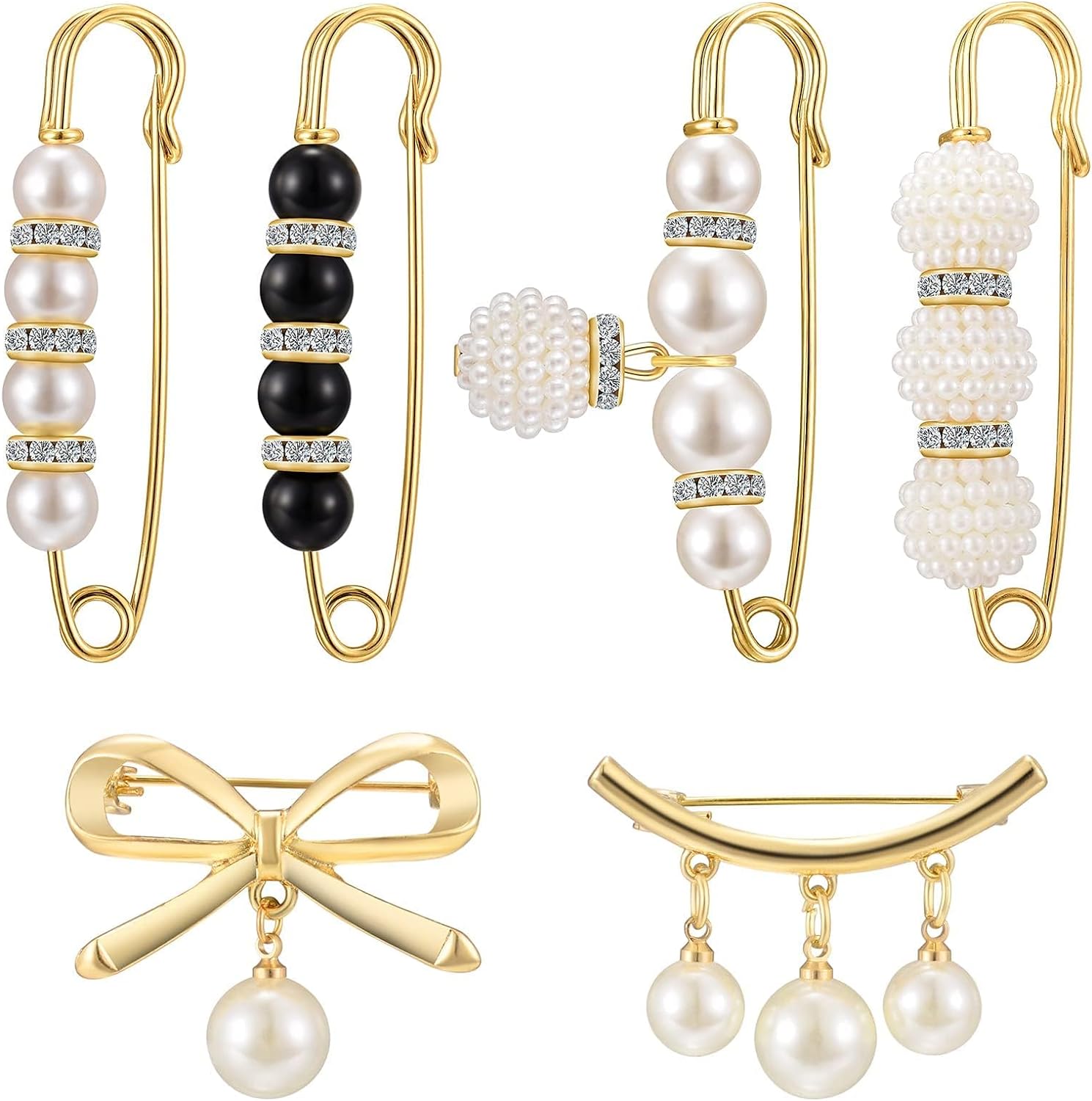 Product Features:Material: alloy and artificial pearl.Size: as shown in the picture.Color: White.Package Content:6Pcs faux pearl brooches.Exquisite Design:Brooch pins are designed with artificial pearls and artificial crystals. Pearls with good luster and sparkling crystals can make you look more attractive and add a touch of sophistication and elegance to your outfit.Durable Material:The sweater shawl clip is made of high-quality alloy material, which is sturdy and durable. The quality material ensures that the artificial pearl and crystal are not easy to fade and can be used for a long time.Wide Range of Applications:Good accessories for shawls, collars, sweaters, hats and dresses, suitable for formal and casual occasions. Simple and classic design can match your best outfit.Note:When you remove the ball to attach the pin to the clothing, the needle is very pointed.Not suitable for children under 3 years of age, as small parts may be swallowed.Not suitable for silk scarves or tulle.Due to the long-term sealing during transportation, there is a slight smell after opening the package. The smell disappeared after some time.As different computers display different colors, the actual color may be slightly different from the above picture.Due to manual measurement, please allow an error of 1-2 mm.