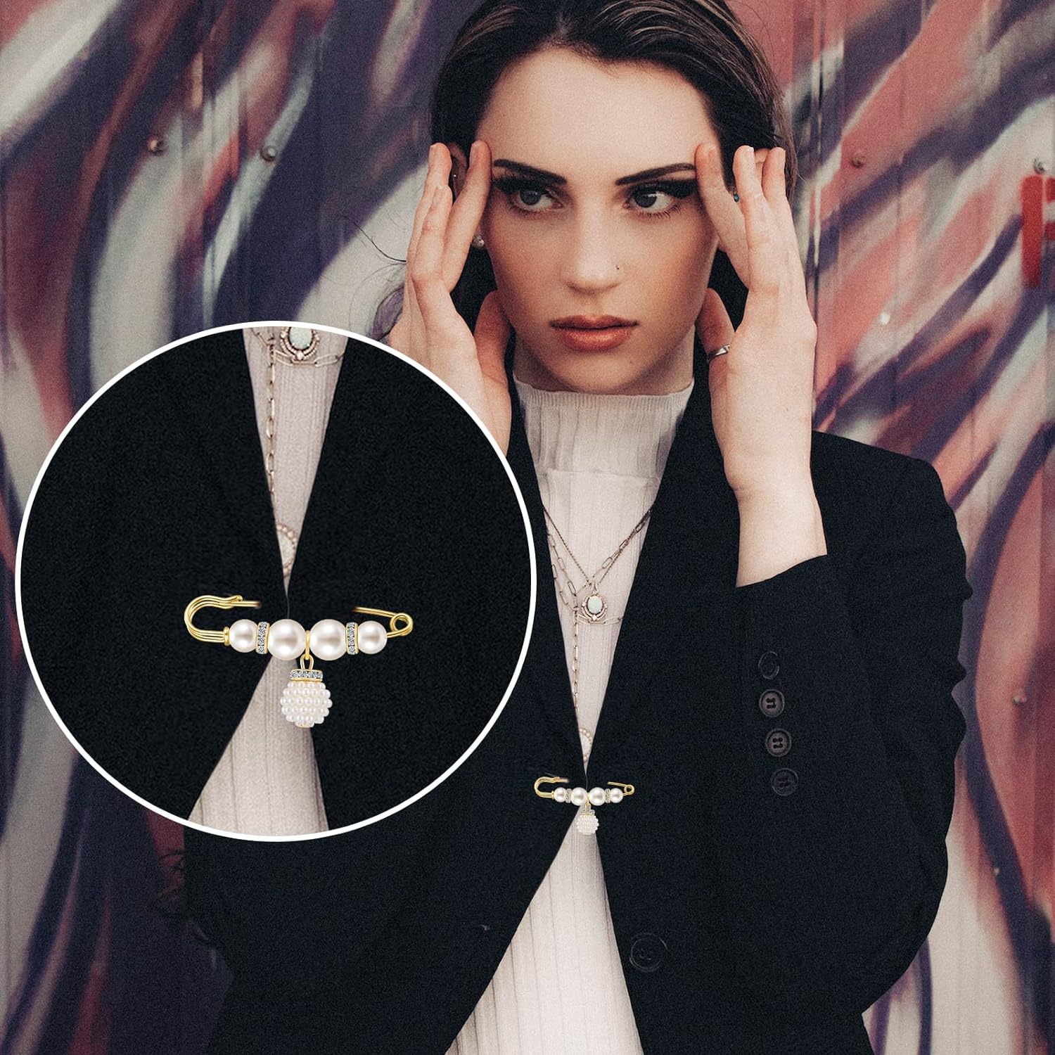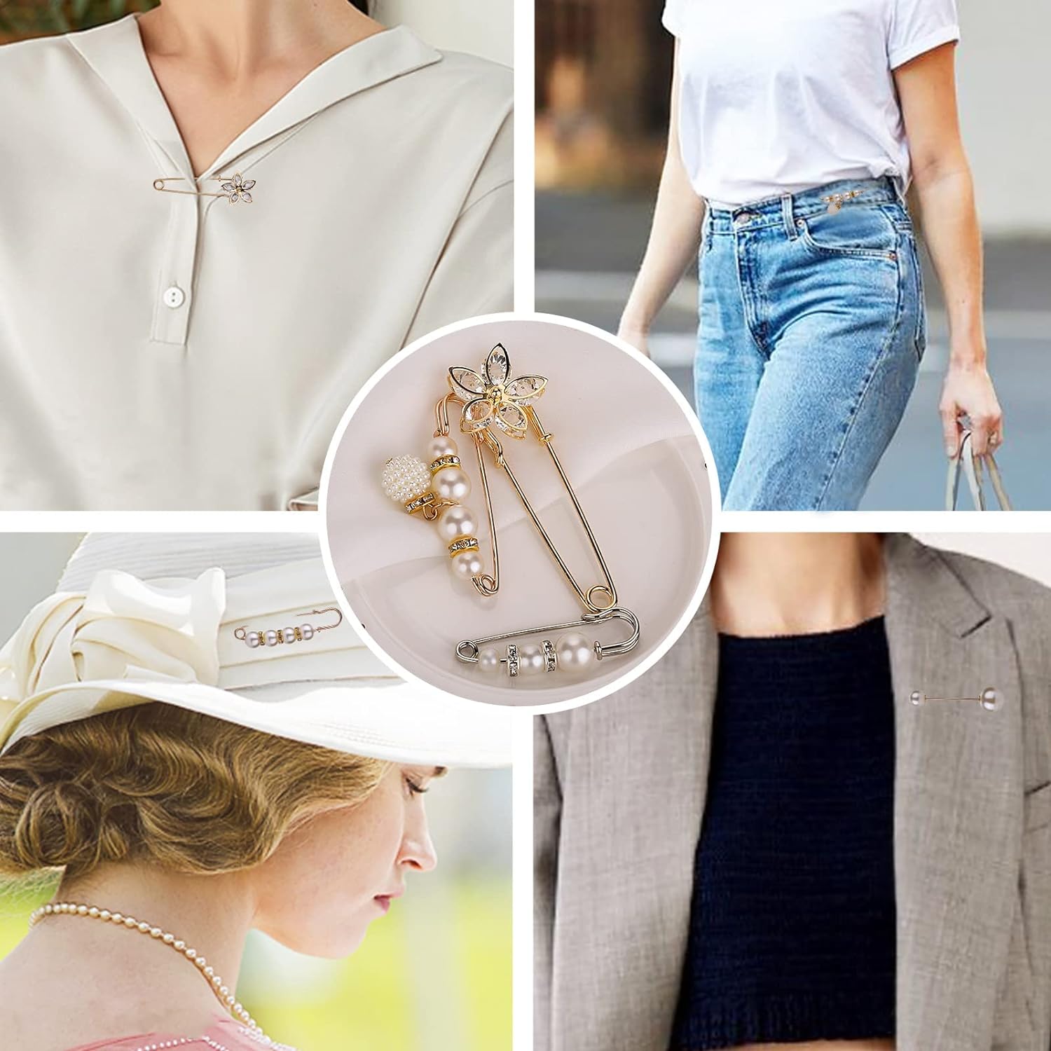 - 【Safety Pin Brooch】Fashionable pearl brooches perfect as a blouse vest safety button to prevent body exposure. Elegant faux pearls and rhinestone crystals make you more striking and elegant in the light. This pin can be used anywhere you don't want to be exposed or as your own decoration. The design is a great choice for fashion matching and decorative accessories.