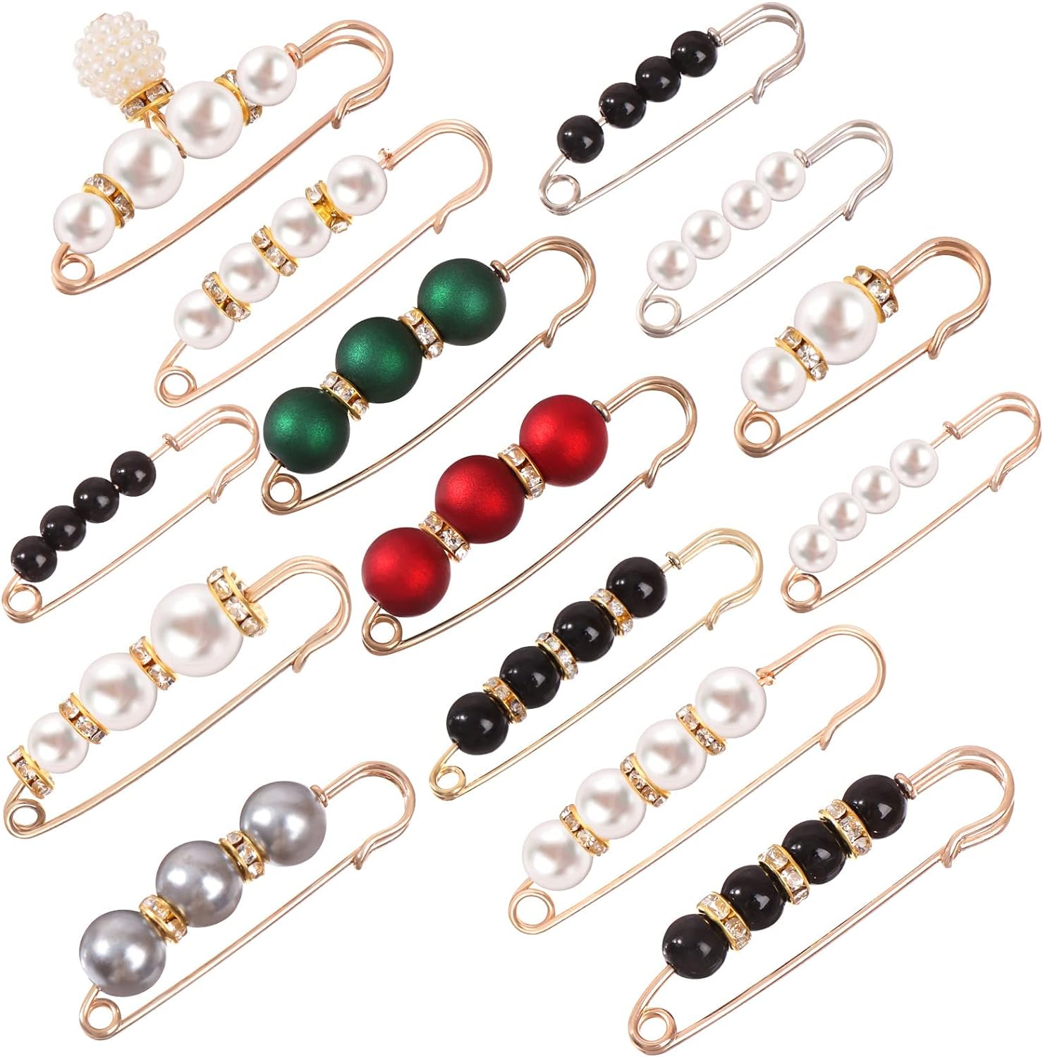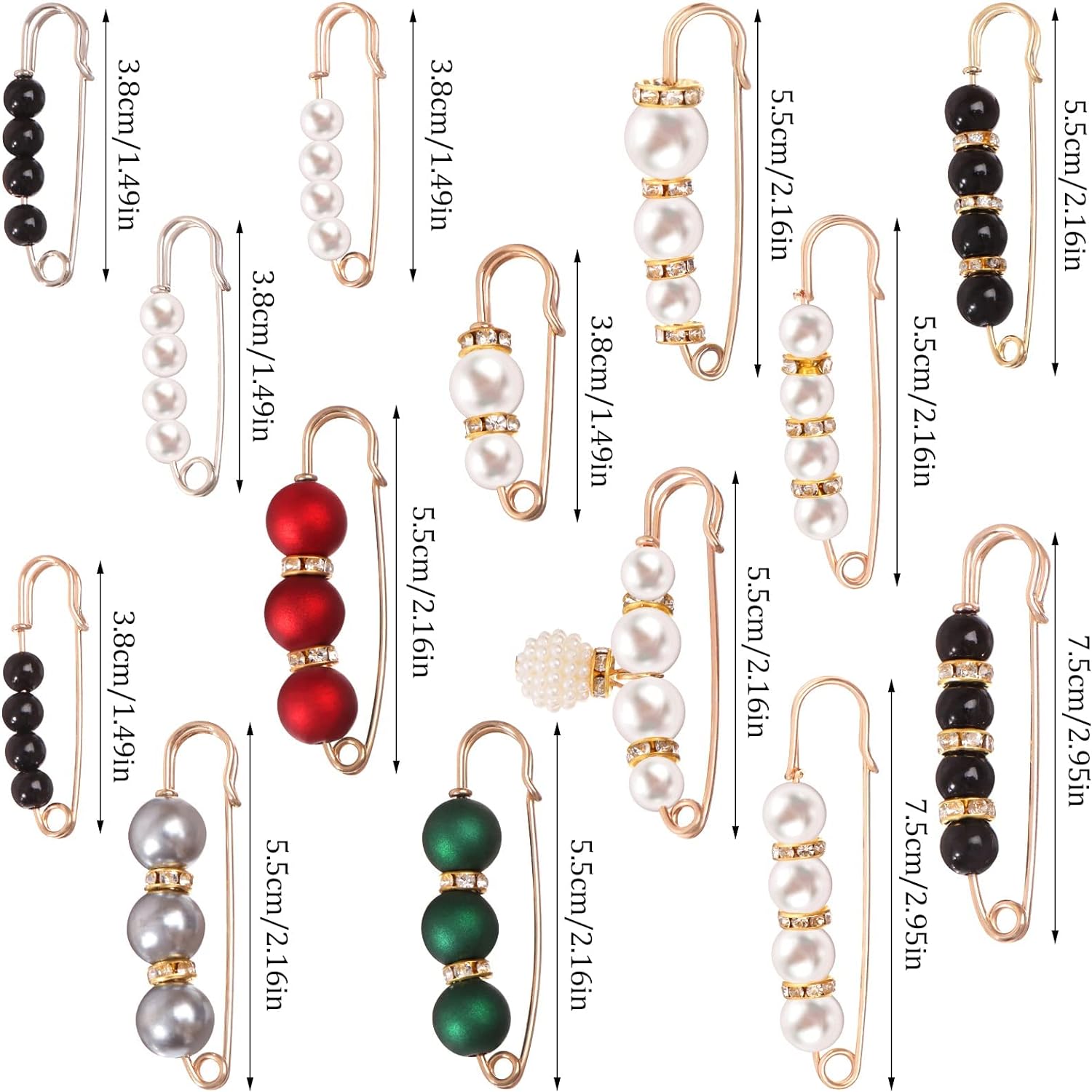 Brooch safety pins are decorated with delicate elements such as crystal rhinestones/artificial pearls that shine in the sunlight. They can be attached to your clothes, sweaters, shirts, dresses, scarves, shawls and bags to match your different outfit styles and bring more glamorous feelings.Specifications●Material: alloy, rhinestone or artificial pearl●Color: As shown in the picture●Size: as shown in the picture●Package Contents: 14 x Artificial pearl brooch safety pinsWarm tips1. Due to manual measurement, please allow a slight size error.2. Due to different screens, the color may be slightly different from the picture.3. Including small and pointed parts, please keep away from children.
