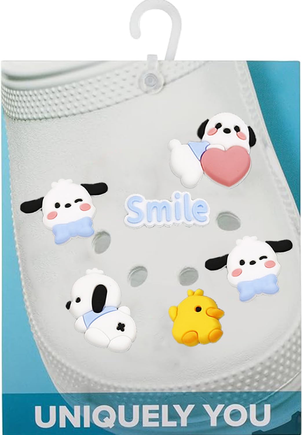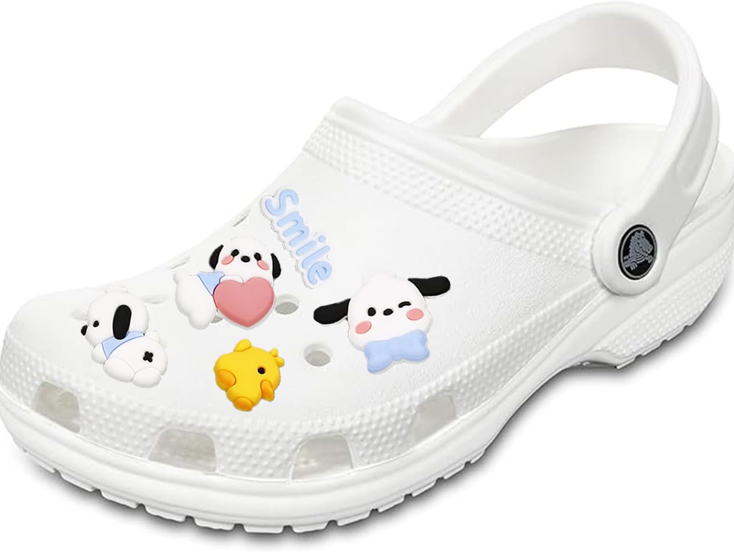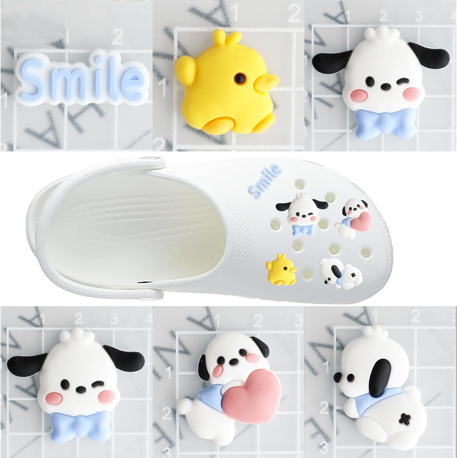Add a touch of cuteness and personalization to your child's Crock shoes with this set of 8 cute shoe charms. Each charm features a different cartoon animal cute dog design, making them irresistible to children. Not only do they enhance the aesthetics of your child's shoes, but they also serve as fun accessories and party favors.These shoe charms are easy to use - simply insert them into the designated holes on Crock shoes, and they will stay securely in place. Made from durable materials, they are built to withstand the demands of everyday use. Additionally, they are safe for children, ensuring worry-free playtime.Beyond shoes, these versatile charms can be used on backpacks, bracelets, or even as decorative elements for DIY projects. They add a touch of whimsy and individuality to any item they adorn.Make your child's shoes stand out with these cute dog shoe charms while providing them with an exciting accessory to showcase their personal style. Perfect for children's events, birthdays, or as party favors, these shoe charms are sure to bring smiles and delight to young hearts.