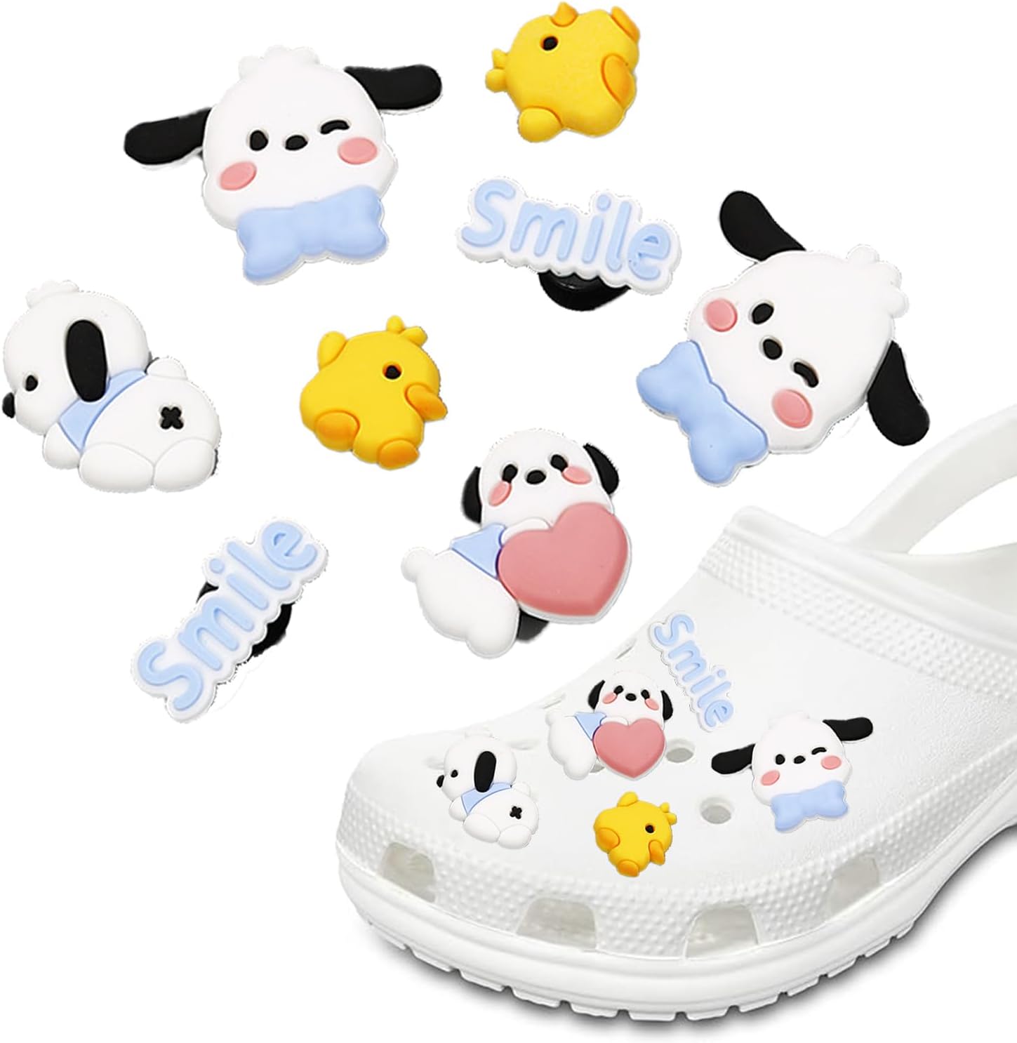 UOEPOWA 8 PCS Cute Shoe Charms for Crock Girls, Cartoon Animal Cute Dog Shoe Charms for Children Accessories Party Favors