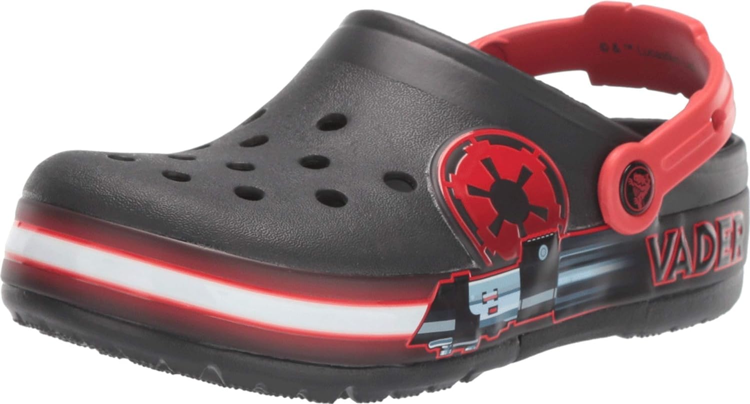 Take a walk on the Dark Side with scary-cool Darth Vader clogs featuring light saber graphics around the band and powerful LEDs that light up with every step. Crocs Fun Lab styles feature original character-rich graphics, licensed characters from popular entertainments and other inspired designs to help kids express themselves and engage friends. Target Fit: Roomy