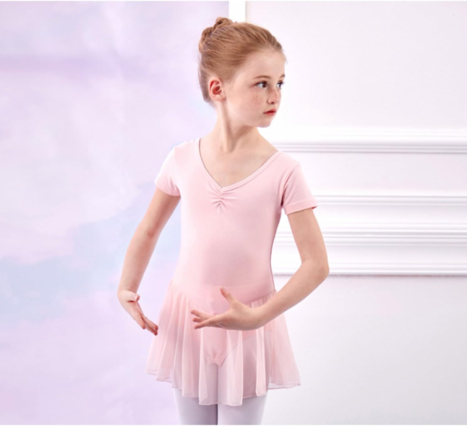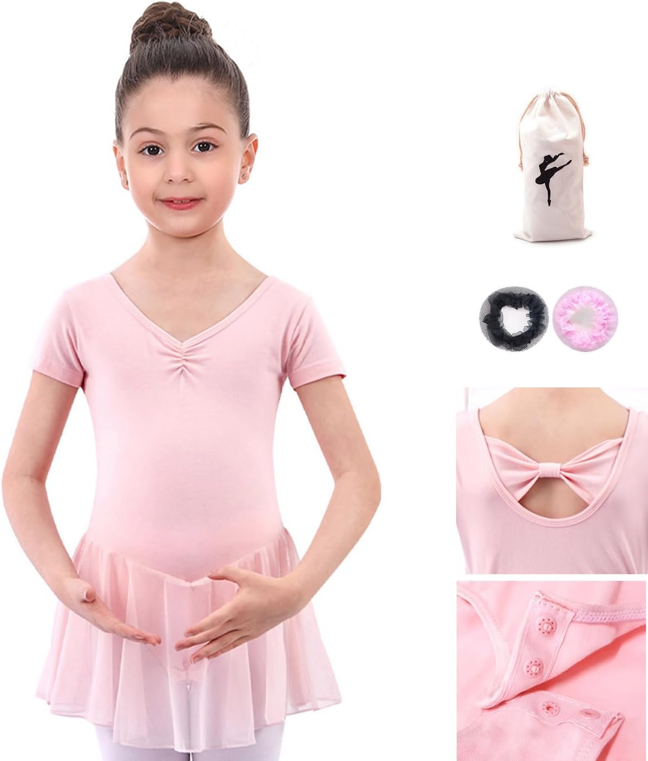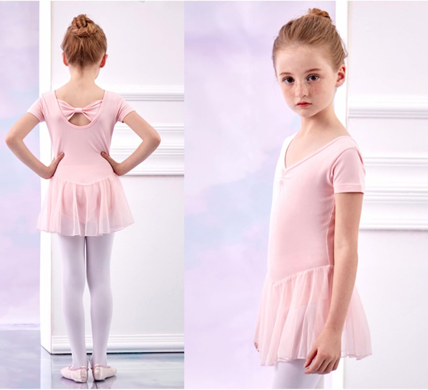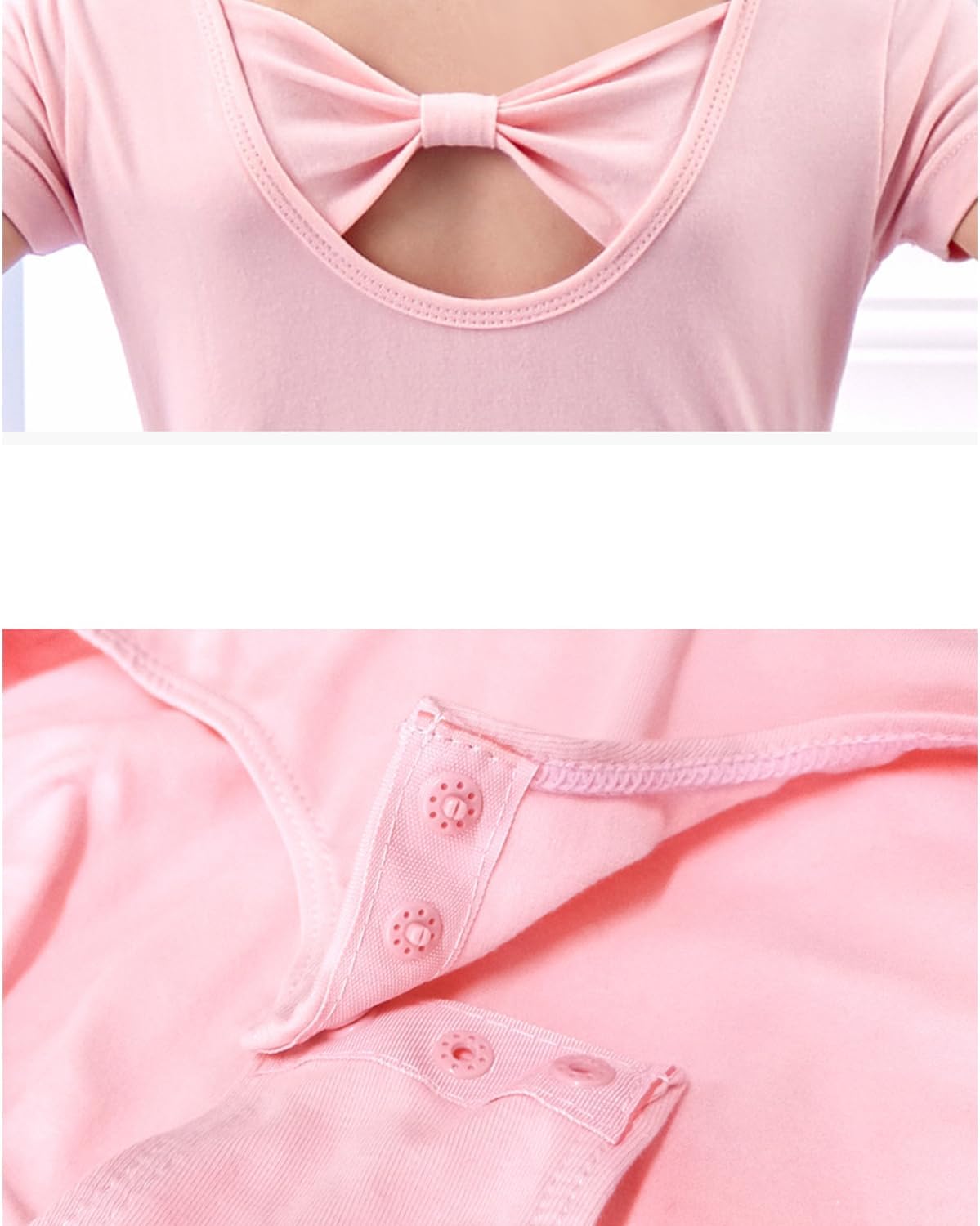 Ballet Leotards for Girls, Girls Cotton Ballet Dance Dress,Dance Leotards for Toddlers, Pleated Sleeve Skirts, Bow design Bodysuits for Girls