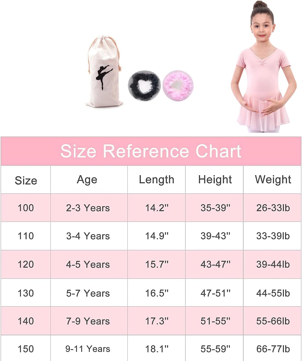 - ❤【Girl's Ballet Dress】: You can receive a ballet dress, a dance shoe storage bag, and 2 curly hair nets. Help your child learn dance better.