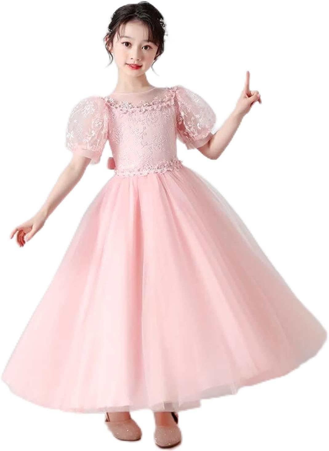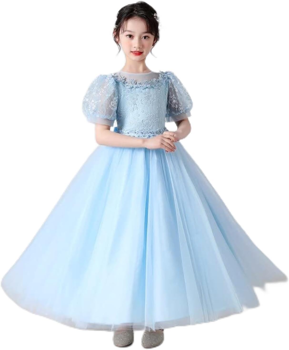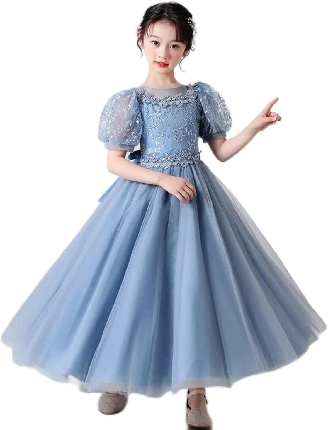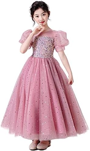 Best Gift Fashion Girls Dress Summer Princess Dresses Sequins Puff Sleeve Ankle-Length Mesh Flower Girl One-piece For Wedding Evening Party (Navy Blue,8 years)