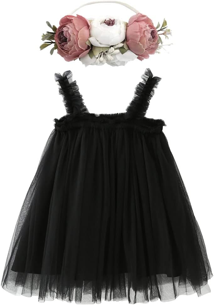 Layered Tulle Tutu Dress for Toddler Girls,Baby Girl Tutu Princess Skirt Set with Flower Headband