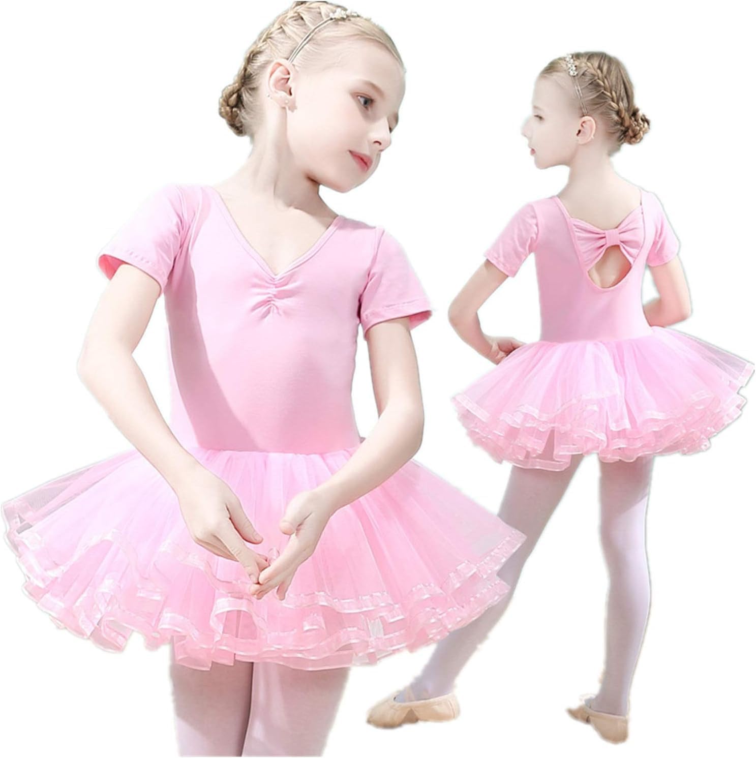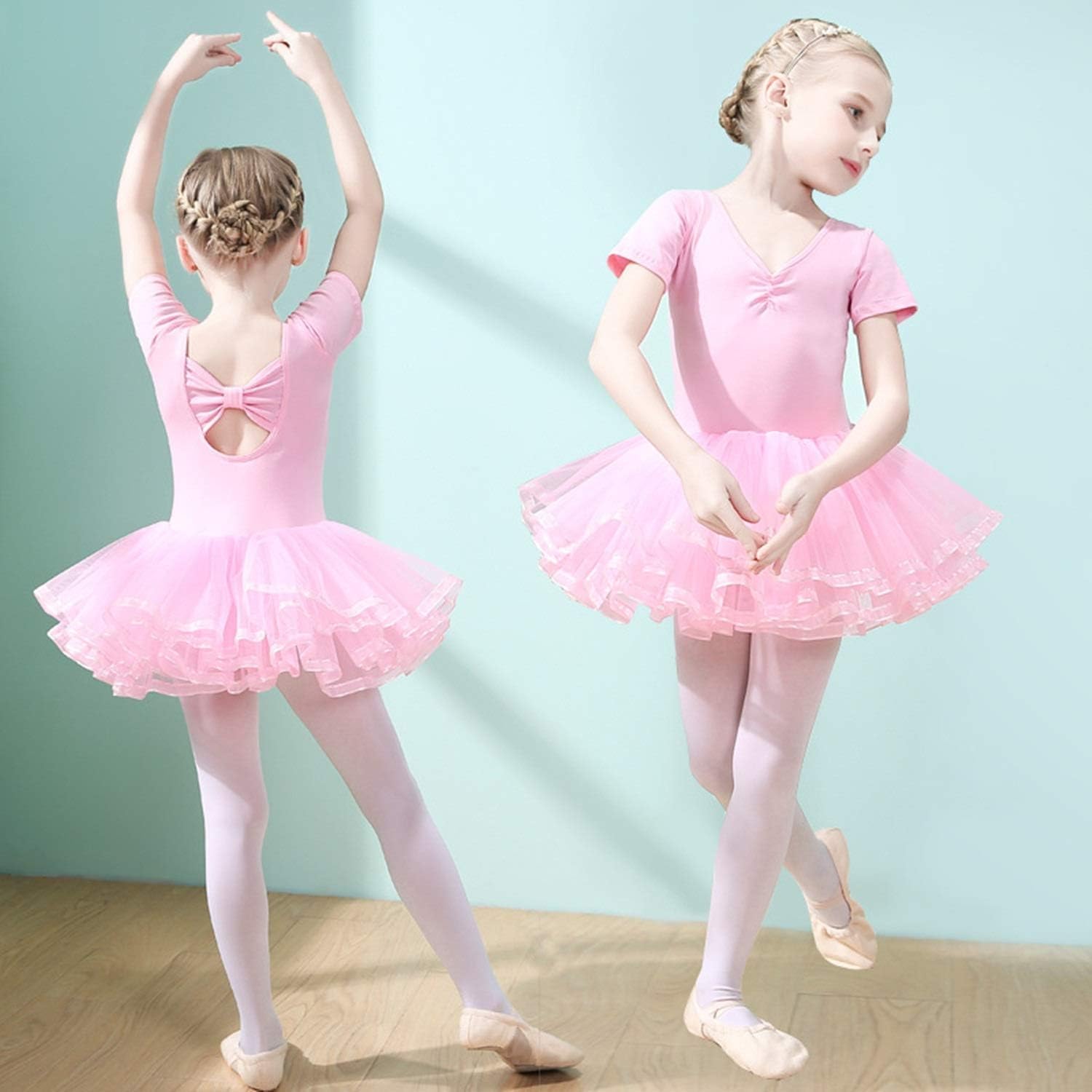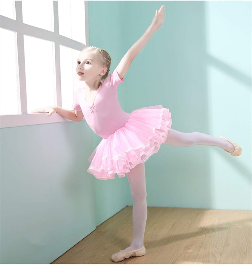 Nyganmelloz Girls Ballet Dress Tutu Slim Dance Leotards Dress Short Sleeve Dress (5-6 Years Old)