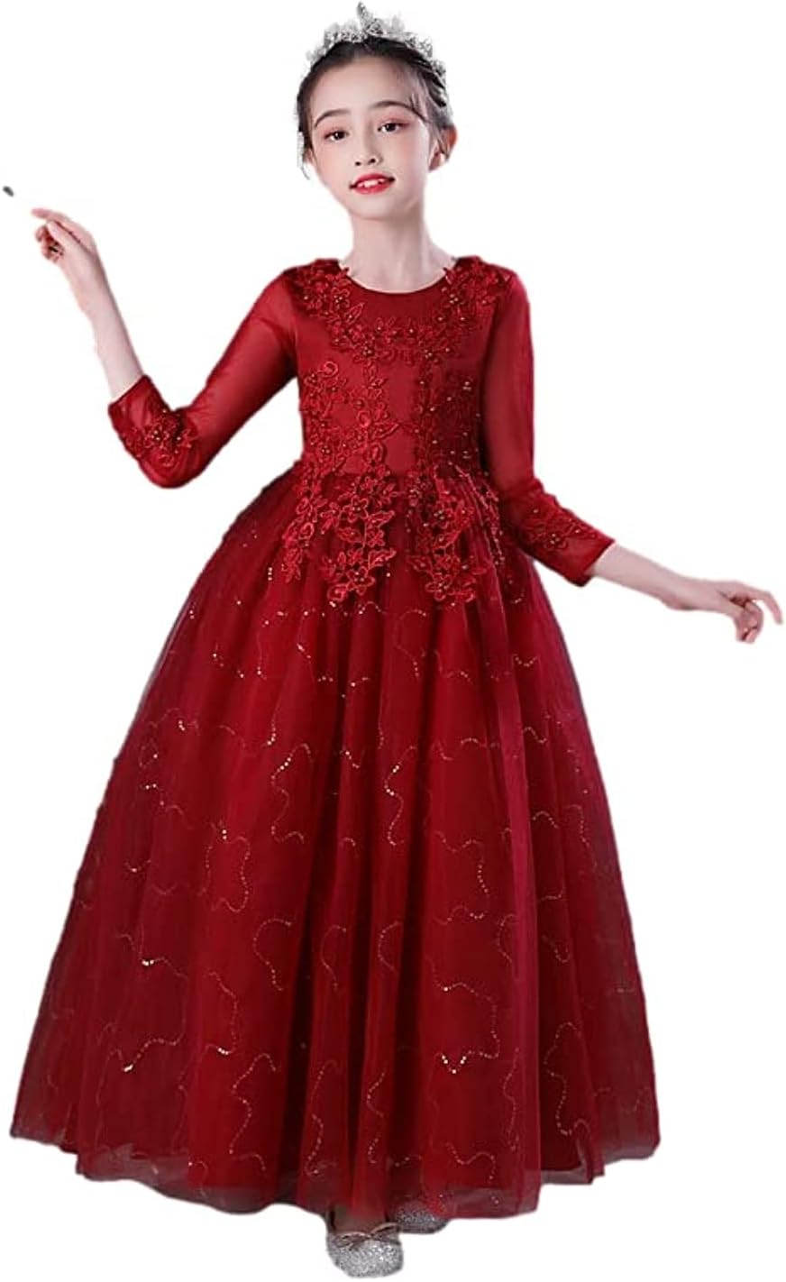 Princess Girl Long Sequin dress new long sleeves children's school party dress show dress girl's birthday party dress