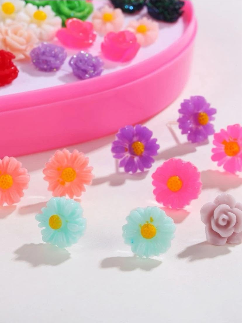 36 cute Pair of flowers Earrings Set for Girls Kids teens and women EID gifts birthday gift