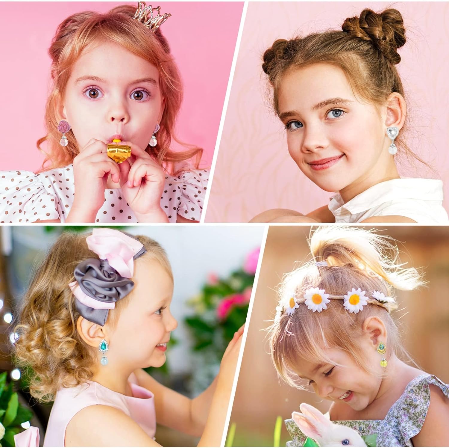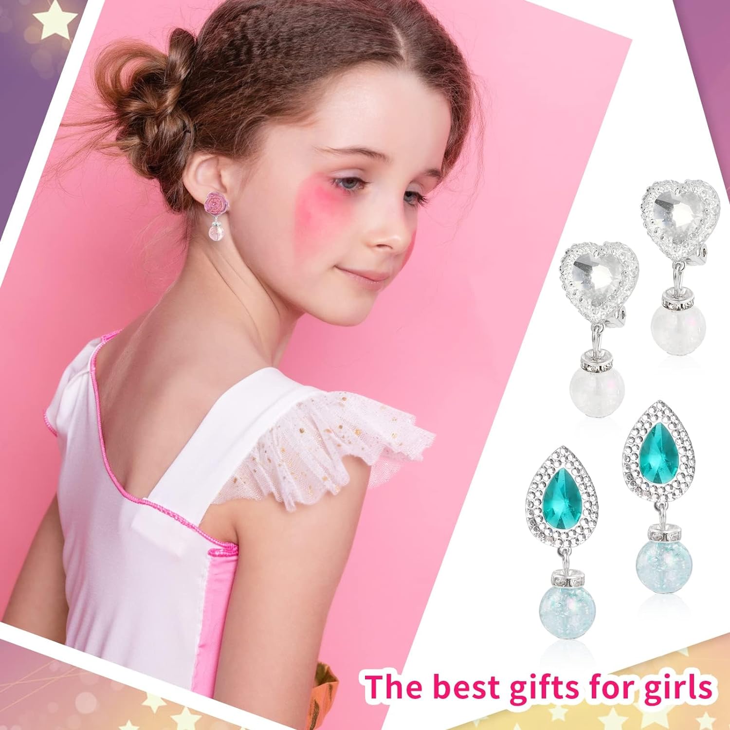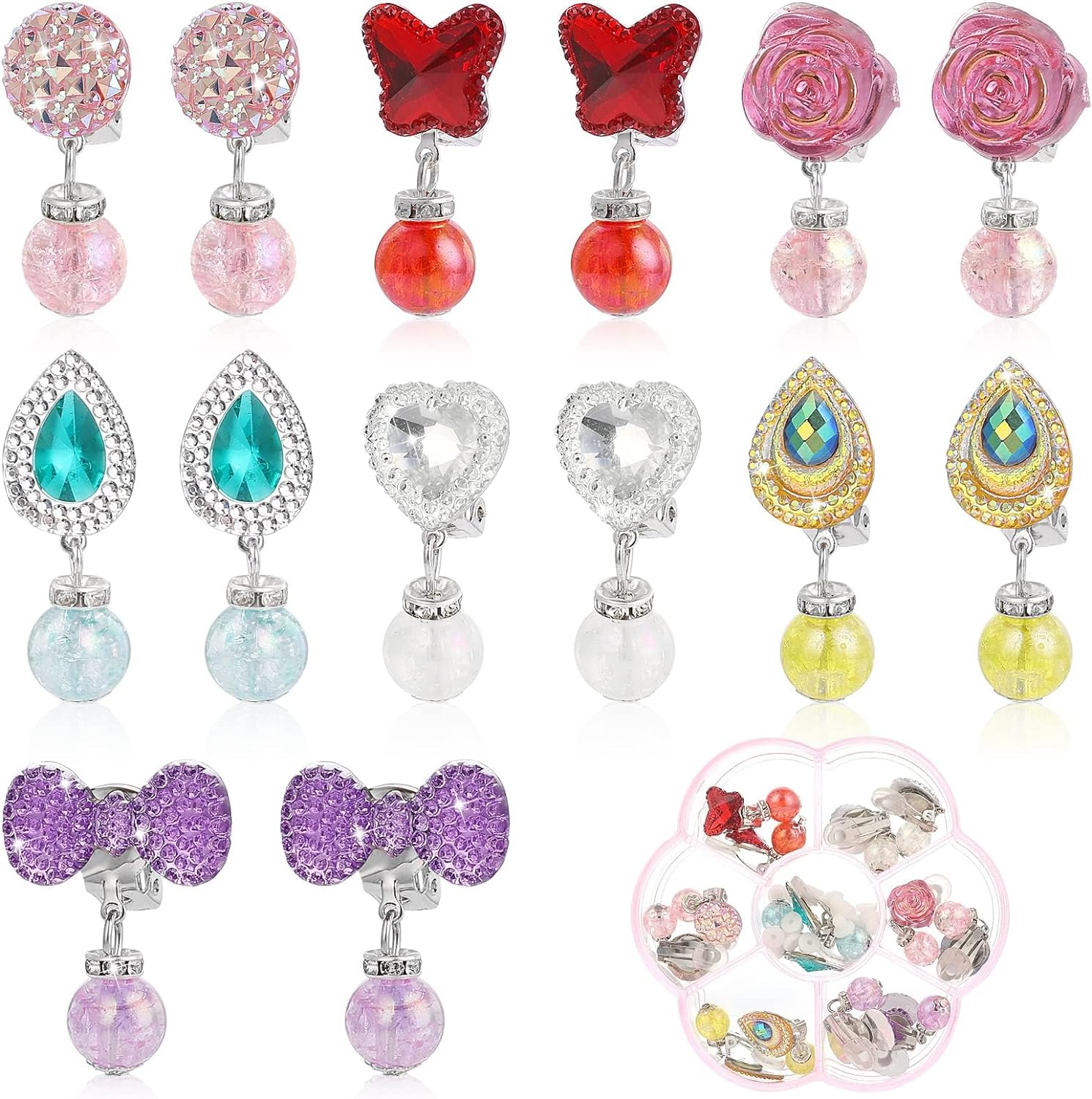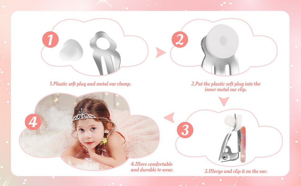 • EASY TO USE: With the clip-on closure, the girls dress up earrings can be easily put on and taken off,suitable for non-pierced ears.Each earring is in a simple way to put on which protect your ears, intimately care for your ears. So that it can be put on or taken off with very little effort.