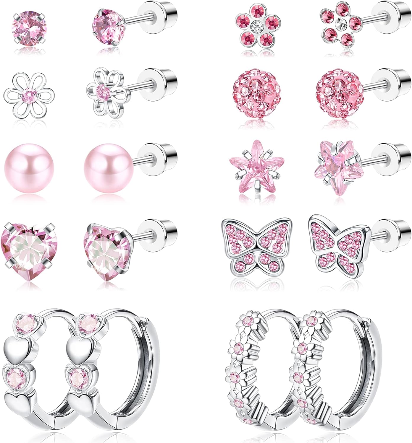 • 🌸【Cute Screwback Earrings Set】: You can get 8 pairs of SCREW BACK EARRINGS and 2 pairs of cute huggie hoop earrings for women girls in one set, including: CZ earrings, ball earrings, star earrings, butterfly earrings, flower heart stud hoop earrings, etc. The classic and cute design makes you and your daughter more elegant and charming.