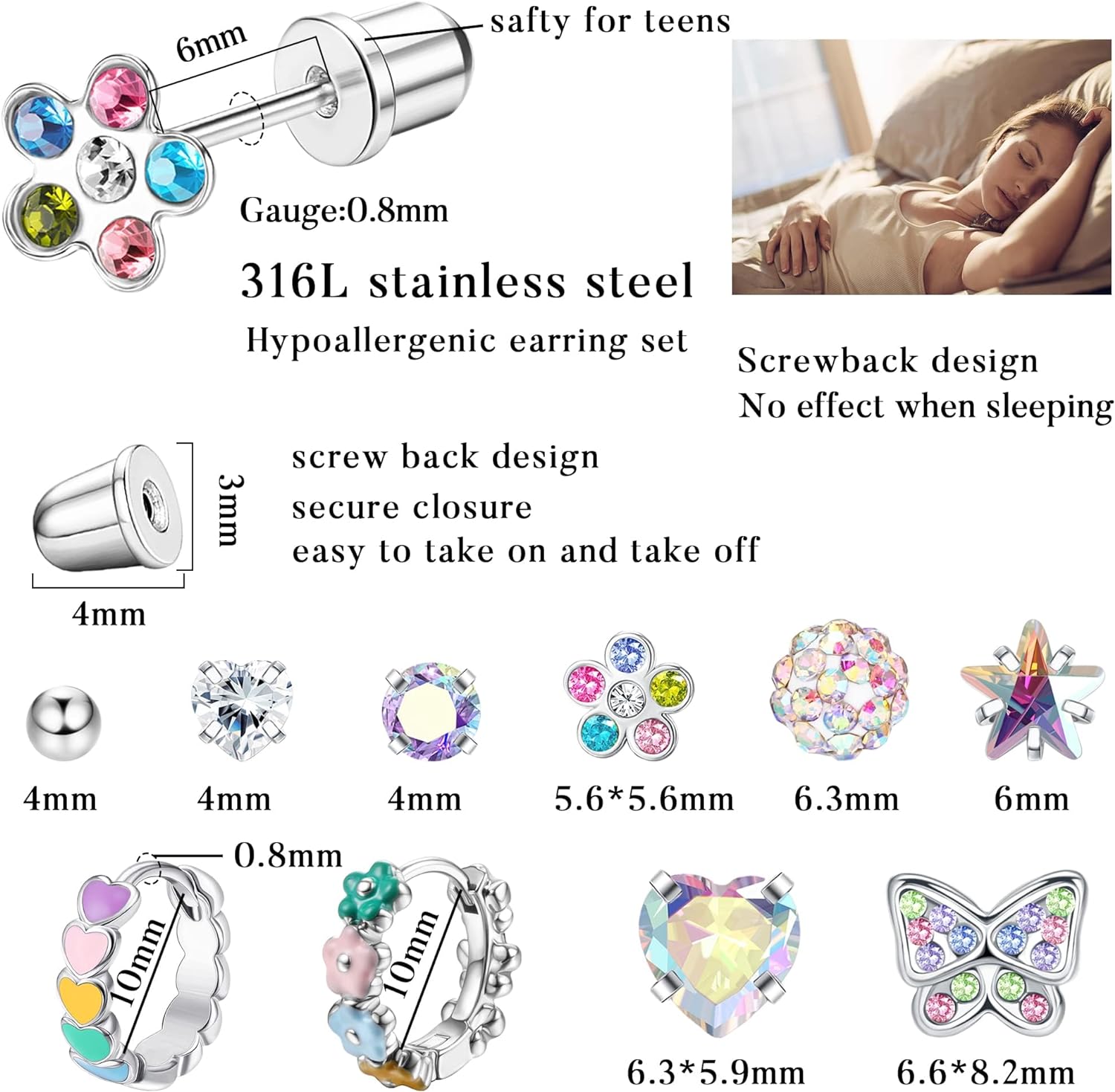 • 🌸【Hypoallergenic Earrings For Girls】: The screwback earrings are made of 316L stainless steel and 5A zirconia,they are durable, lightweight, lead and nickel free, hypoallergenic earrings are suitable for sensitive ears. High quality material, won't make your ears green , comfortable to wear, perfect for everyday wear.