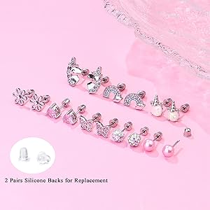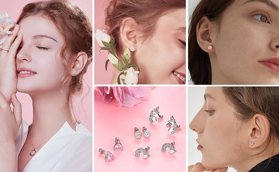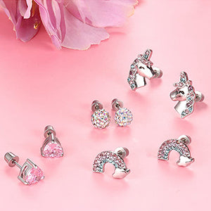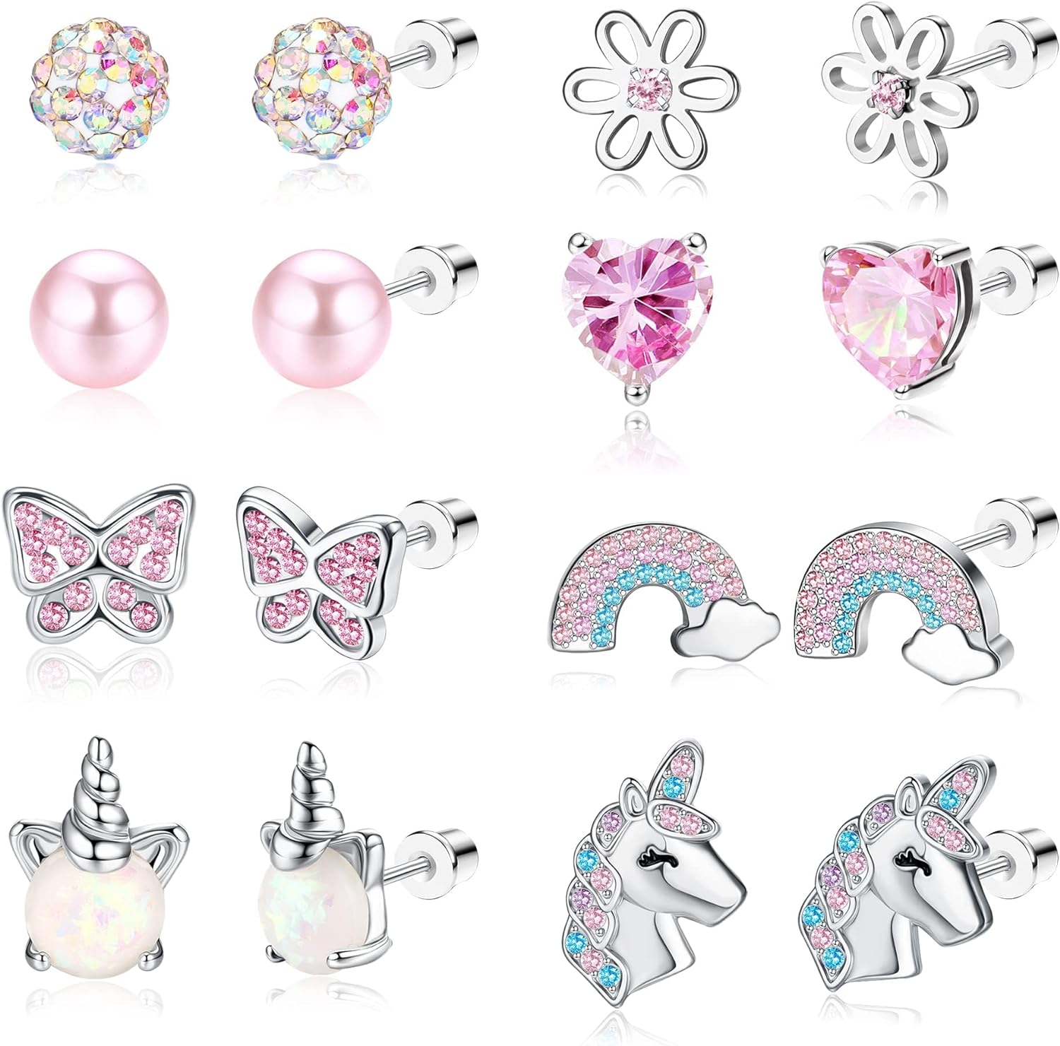 - 【𝐂𝐮𝐭𝐞 𝐄𝐚𝐫𝐫𝐢𝐧𝐠𝐬 𝐒𝐞𝐭】Package Include 8 Pairs Of Screw Back Earrings.There are CZ Heart Earrings, Pearl Stud Earrings, Rainbow Earrings, Butterfly Earrings, Flower Earrings, Opal Unicorn Earrings, Unicorn Stud Earrings. Cute & Sparkling Screwback Earrings Suit for any Outfit and for Women of All Age.