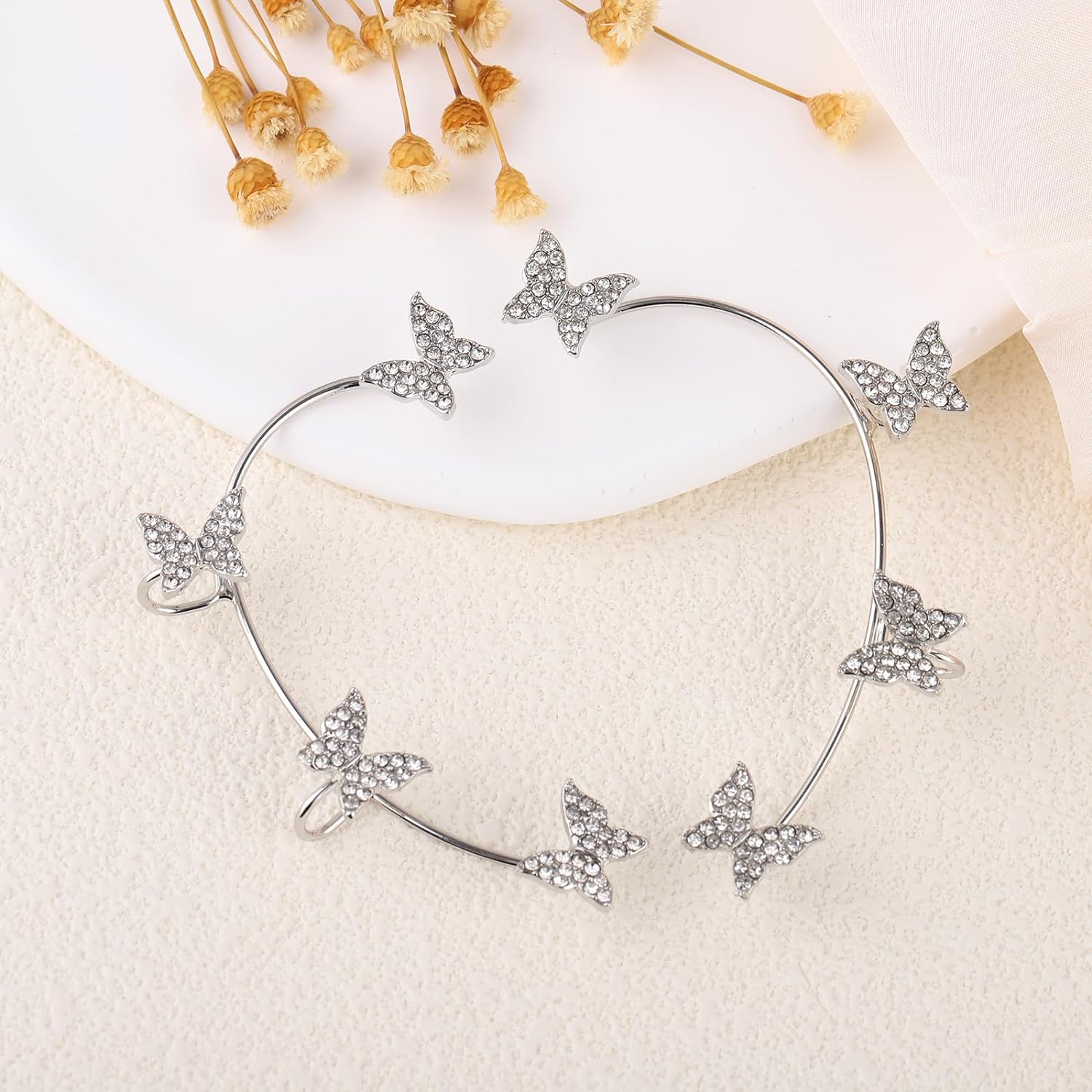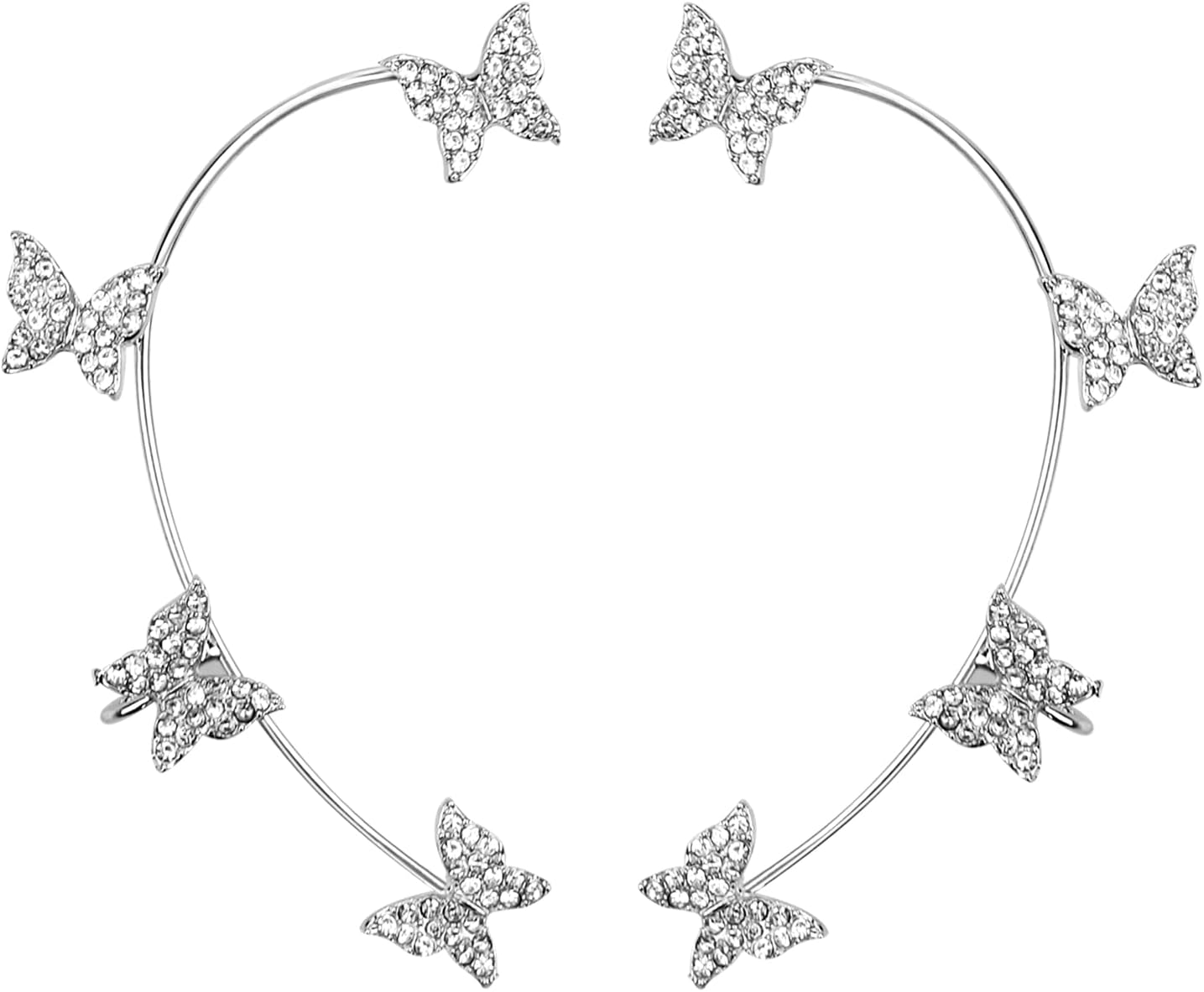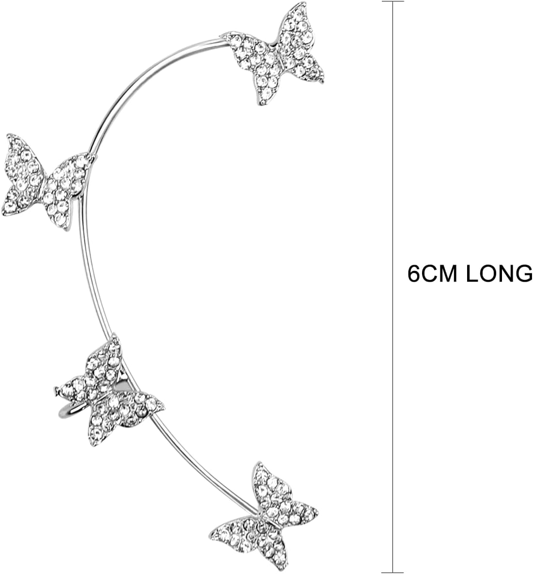 - Package Includes: You will receive 2 butterfly ear cuff (left and right). The shape of hollowed butterfly is classic and fashionable. The rhinestone on the butterfly glitters under the light, making you more elegant and charming.