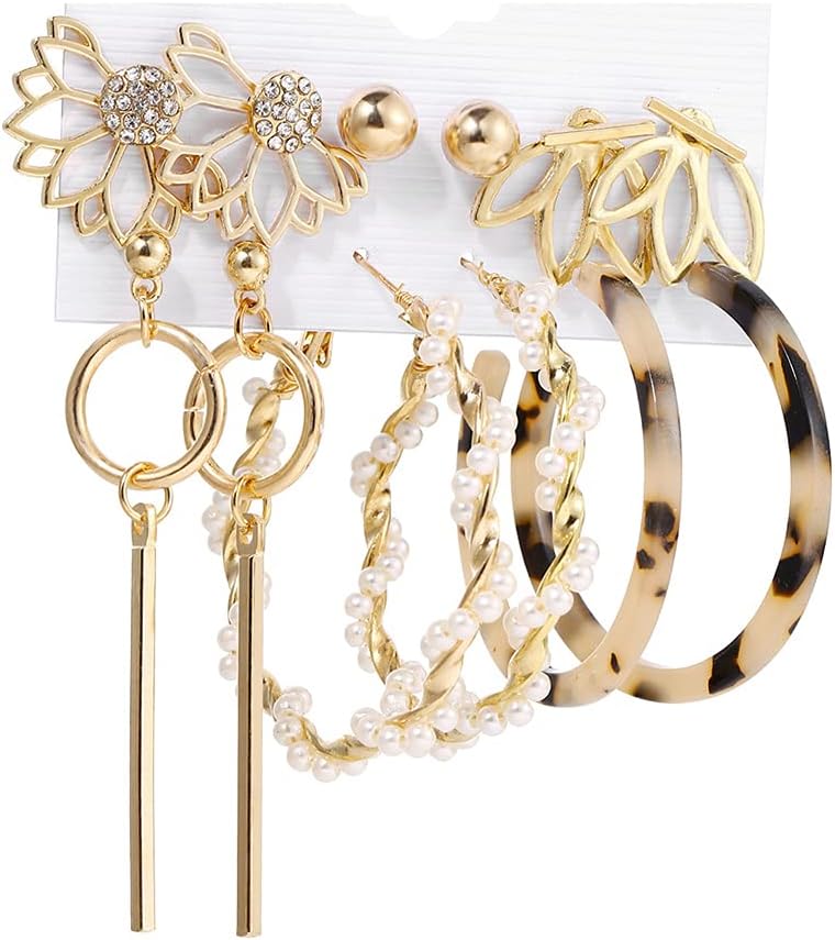 Shining Diva Fashion 6 Pairs Combo Latest Stylish Design Metal Earrings for Women and Girls (A12758er), Golden, 1